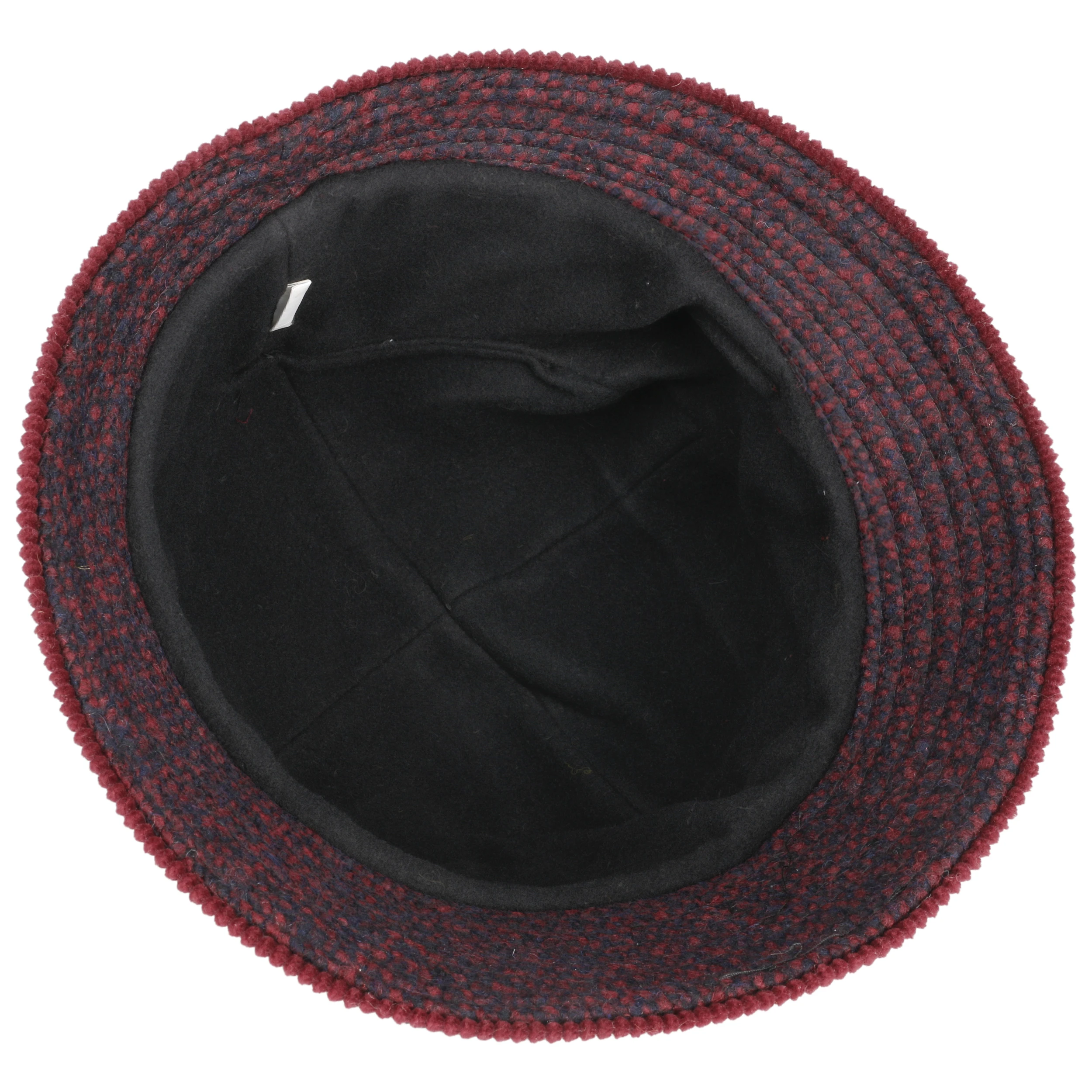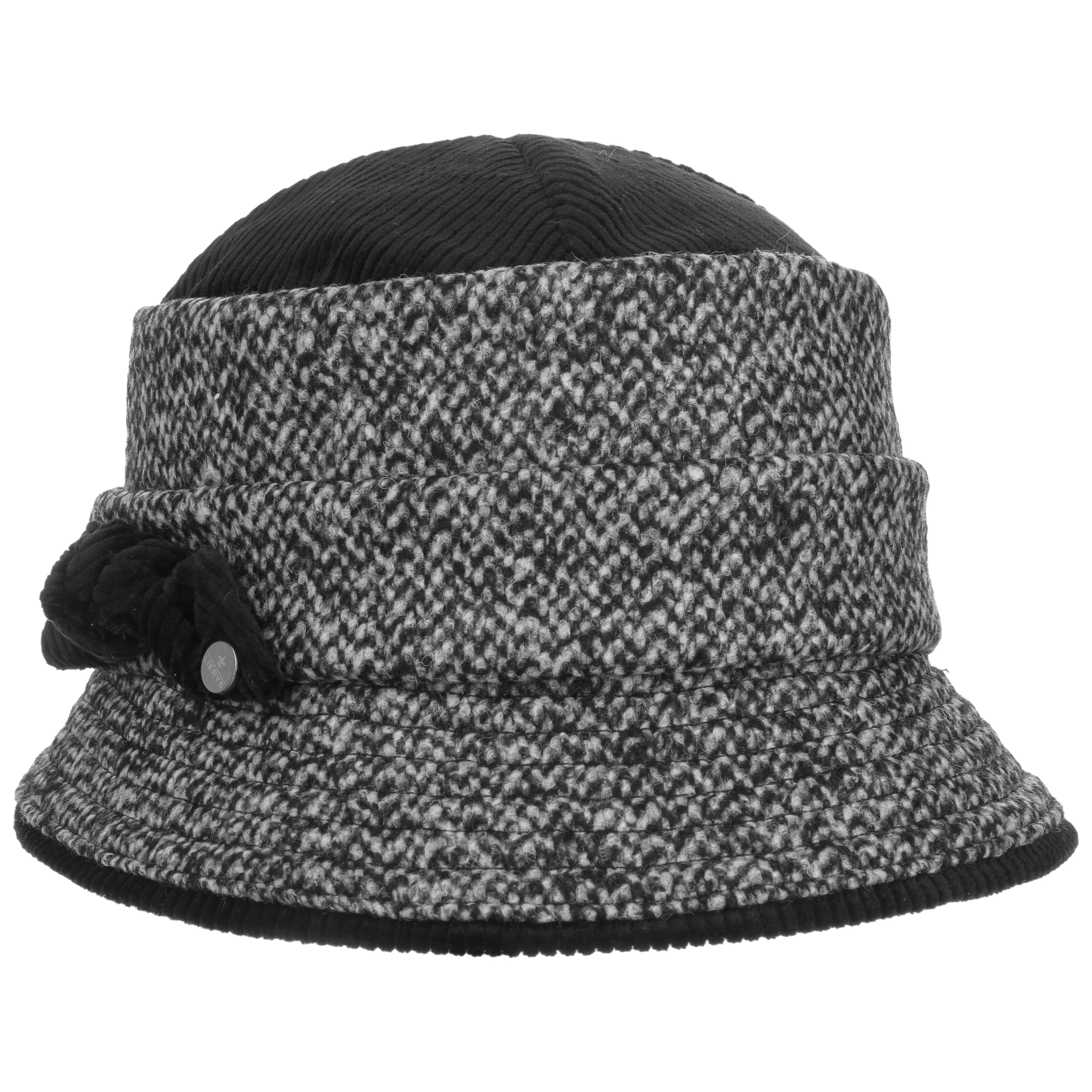 Seine Materialmischung mit wärmender Wolle und hautsympathischer Baumwolle, durch Fleecefutter im Inneren ergänzt, überzeugt ebenso wie sein meliertes Erscheinungsbild, von dem sich der Krempenrand und der Kronenabschluss unifarben abheben. Das i-Tüpfelchen setzt die seitliche Schleife in Cordoptik, mit Markenpin versehen.