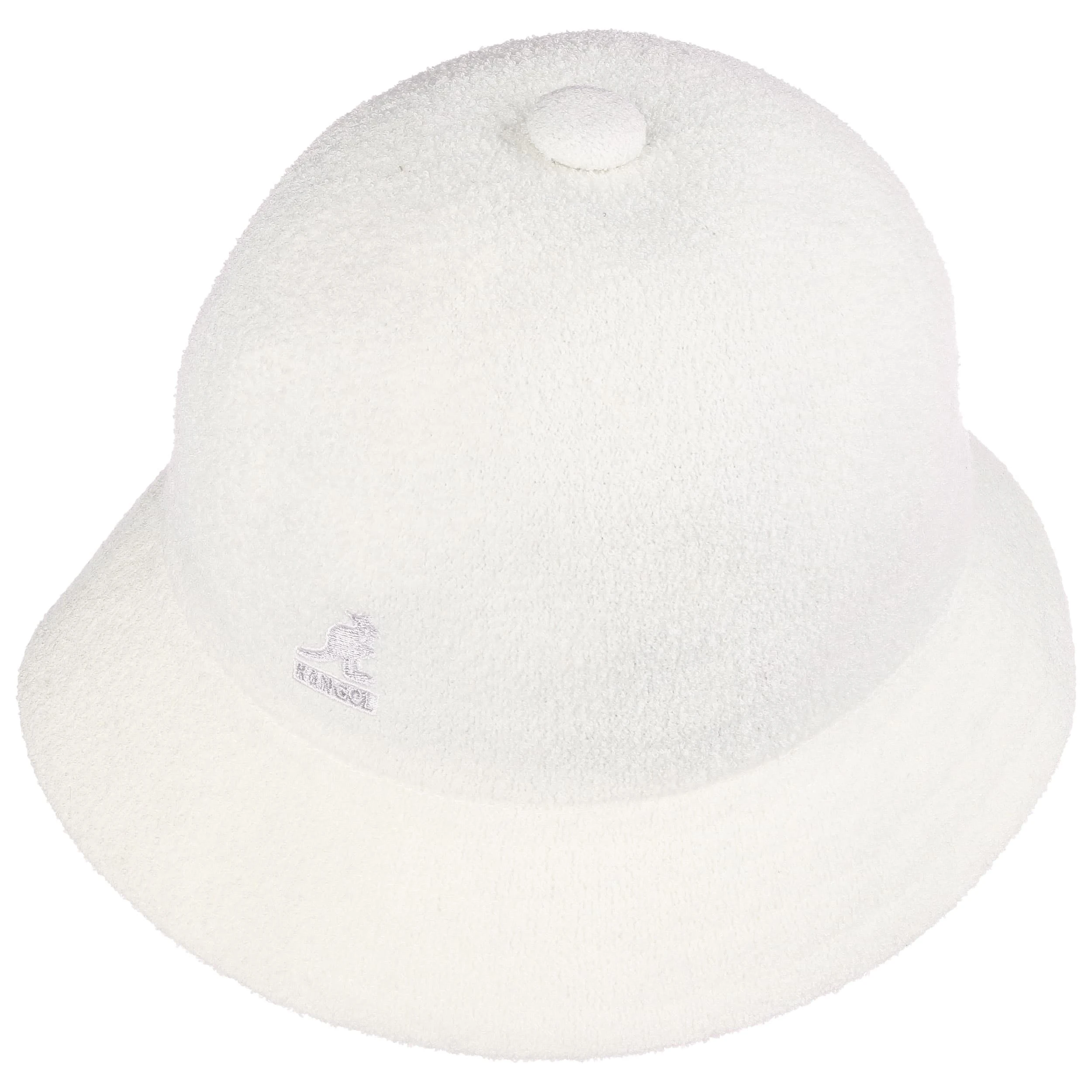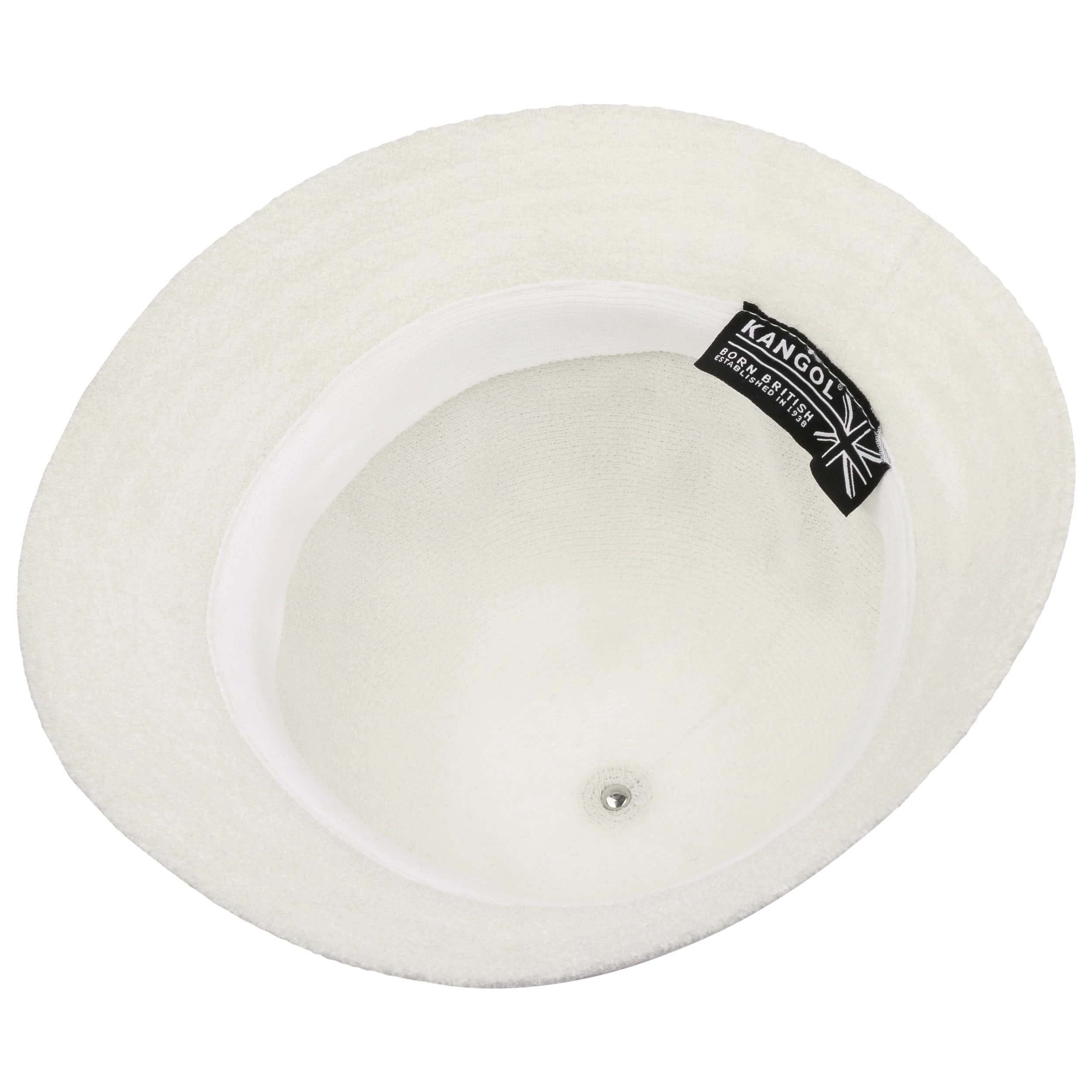 Die Form des Hutes – mit hohem Kopf und tief geneigter Krempe – präsentiert sich im typischen Look eines Tropenhutes. Einen überraschenden Kontrast dazu kreiert die weich anmutende Frottee-Optik des einfarbigen Obermaterials.