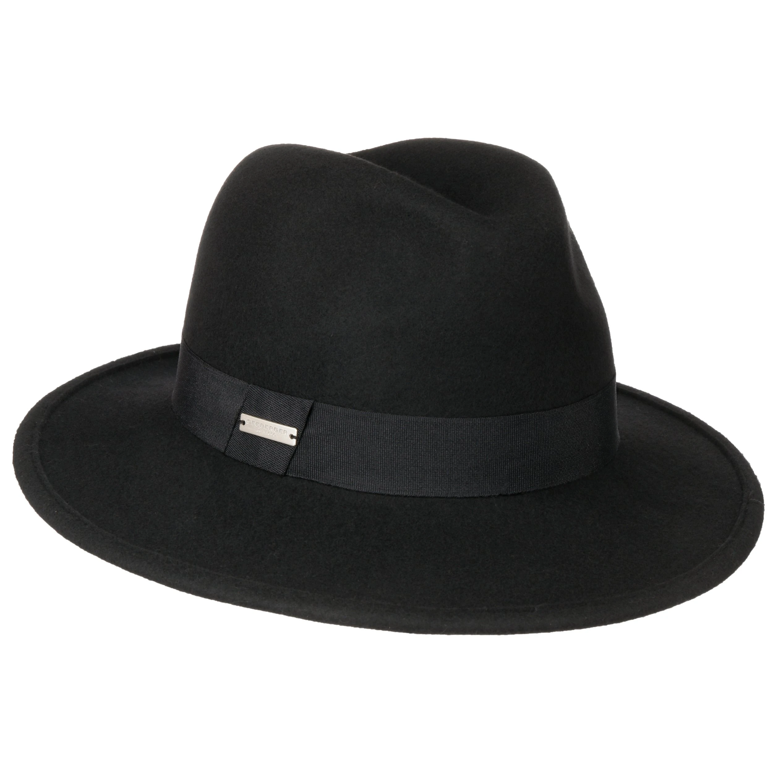 Der hochwertige Fedora von Seeberger überzeugt mit einem aparten, harmonisch anmutenden Look, der sich vielseitig und stilvoll kombinieren lässt.