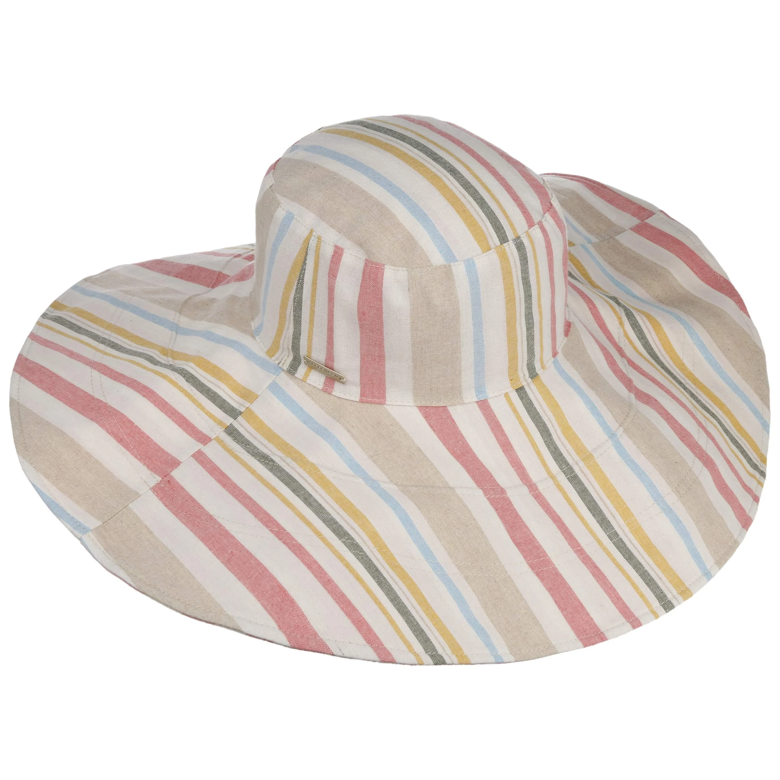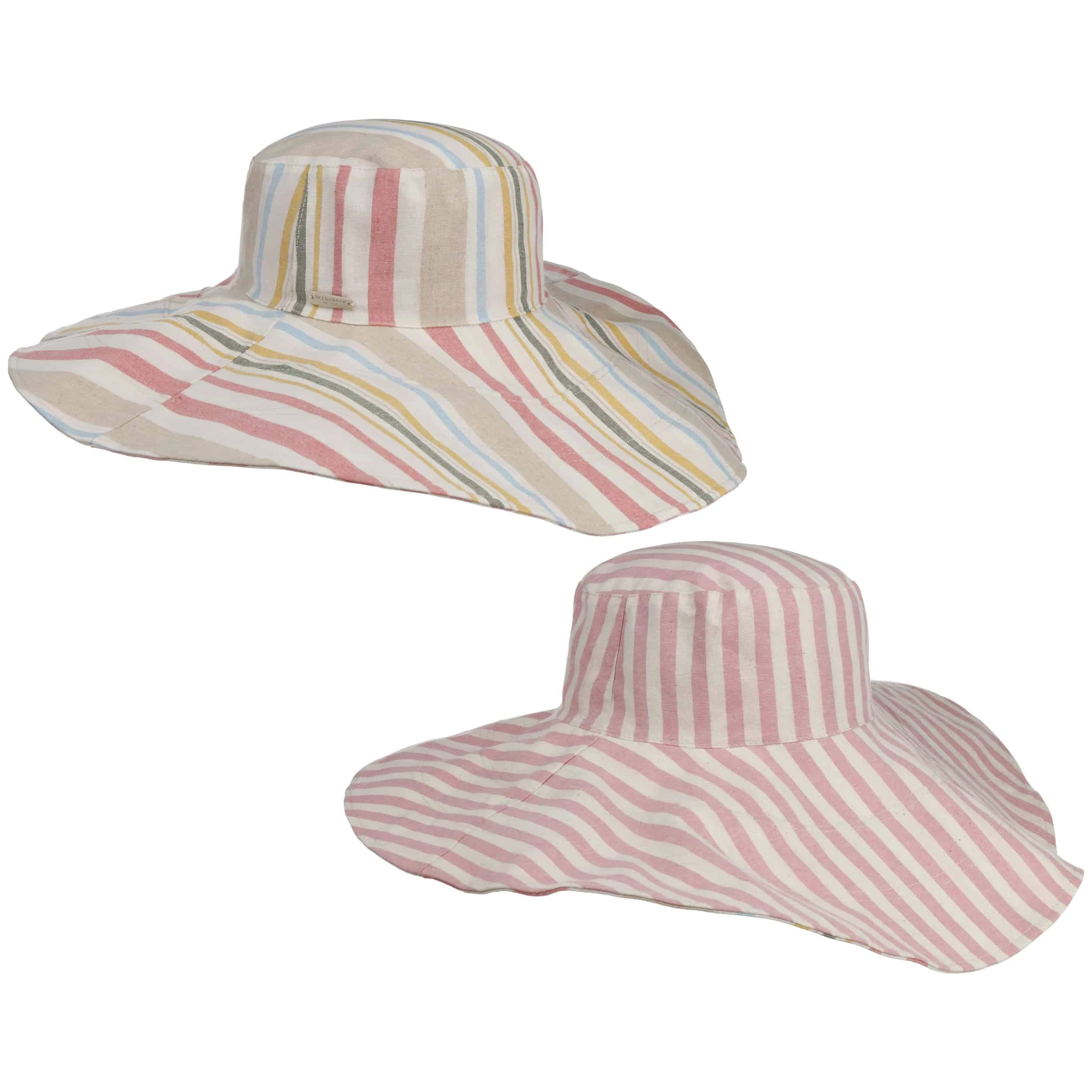Der wendbare Flapper zeigt hat sich beidseitig mit geschmackvollem farbigen Streifenmuster schön gemacht und wird ganz nach Laune sowie passend zum Garten-, Freizeit- oder Urlaubsoutfit mit dieser oder jener Seite nach außen getragen.