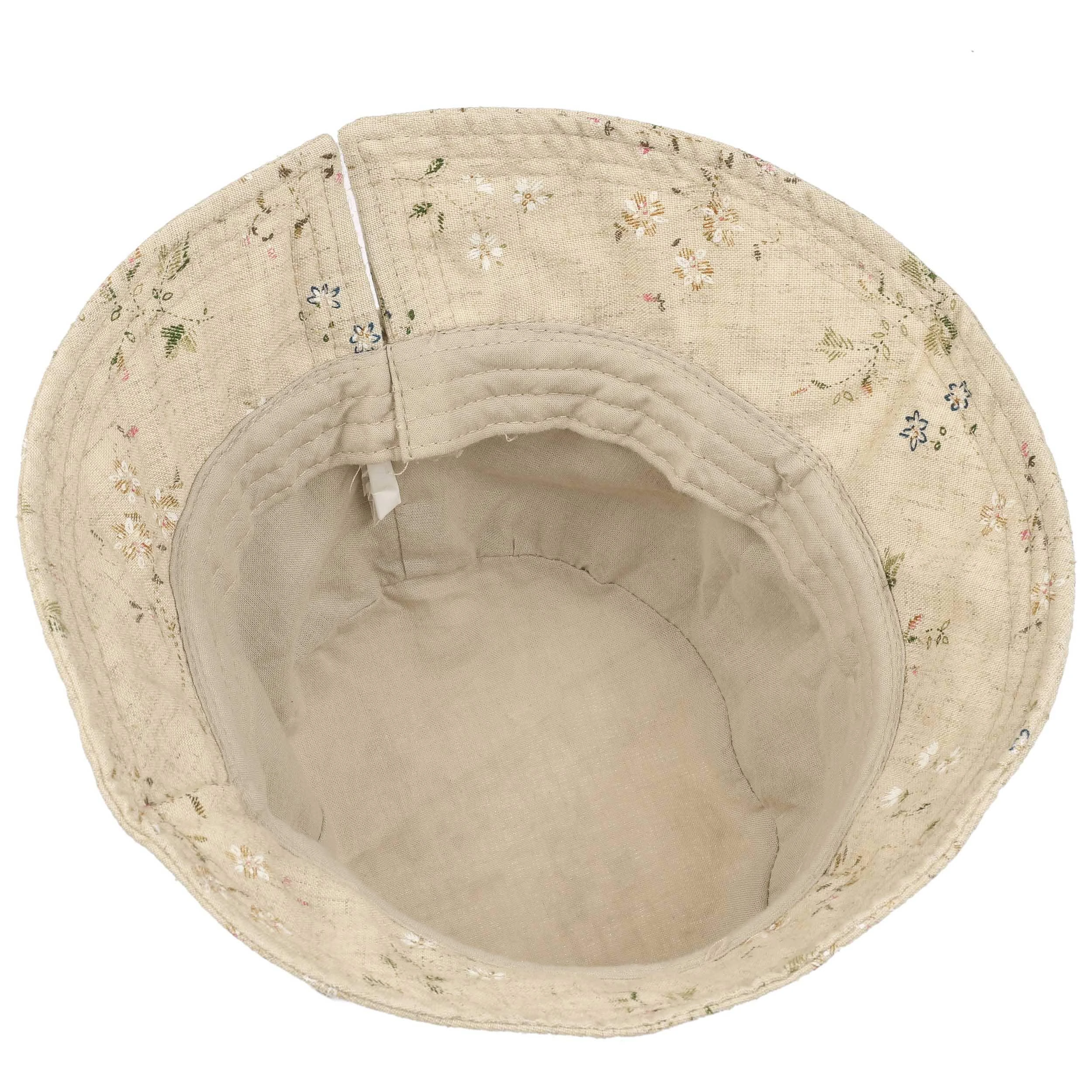 Das mehrfarbige florale Muster, das den hochwertigen Bucket Hat von Lipodo ziert, begeistert mit seiner delikaten Verarbeitung.