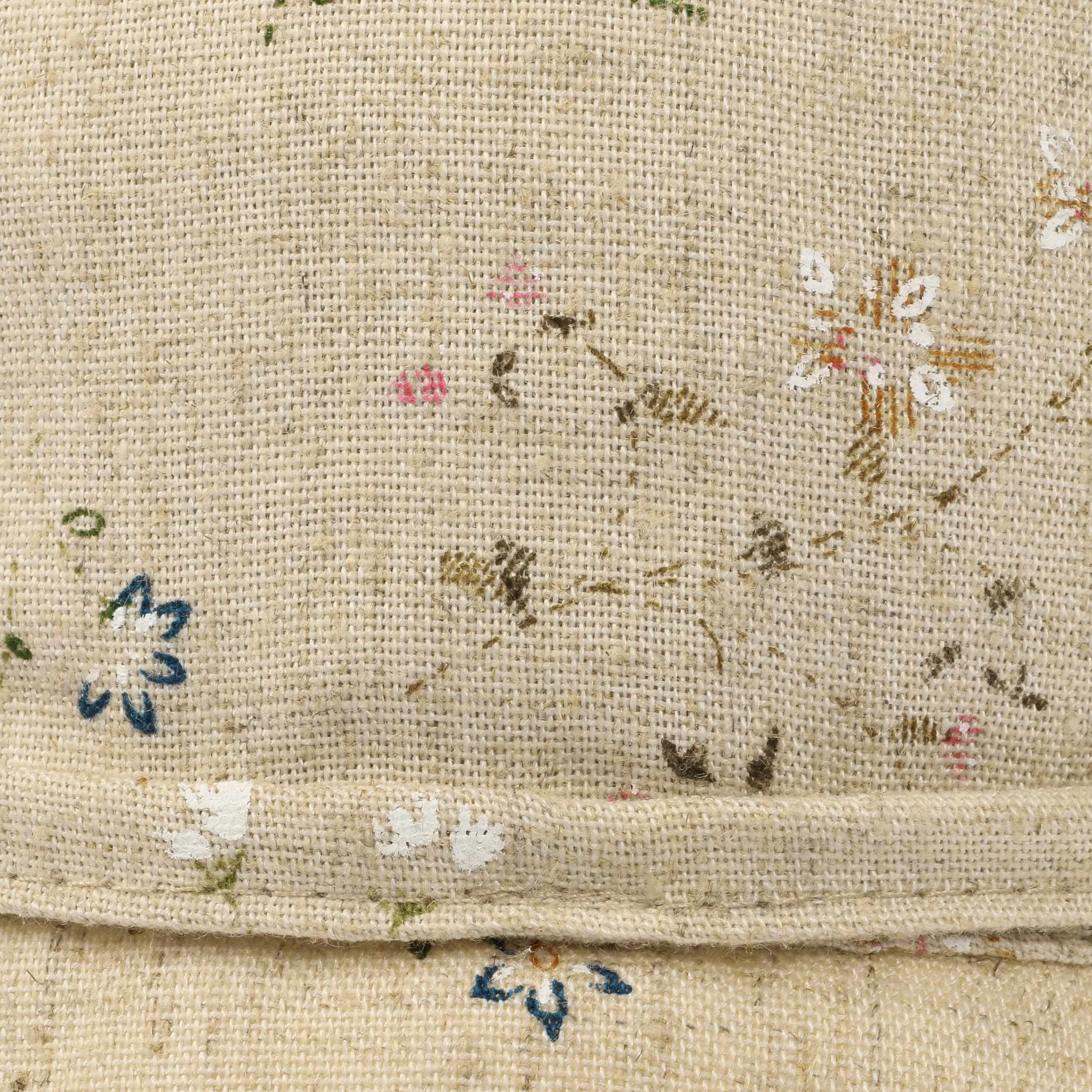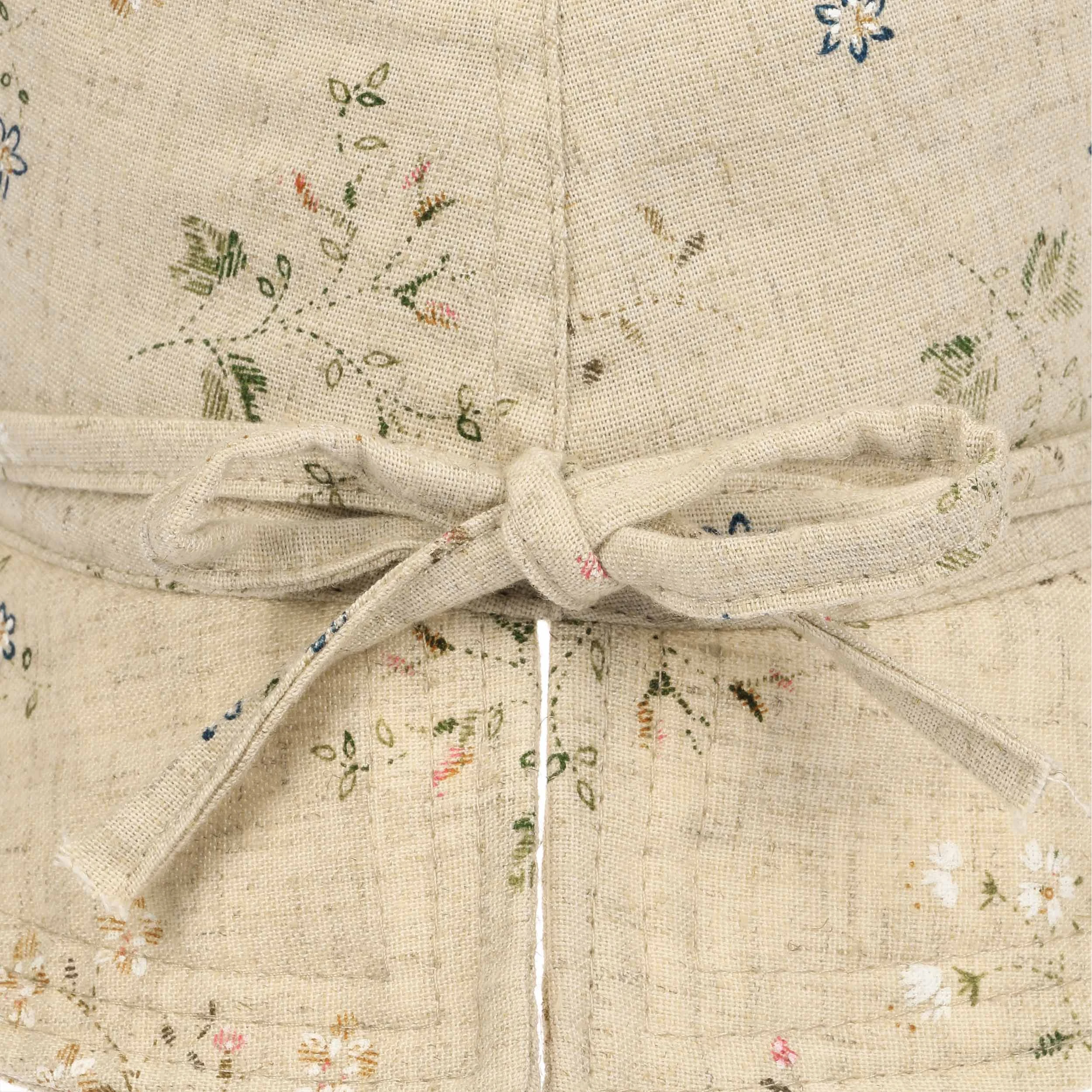 Die zahlreichen zarten Blumen, die sich auf den Kopfteil und die nach unten geneigte Krempe legen, sind sorgfältig auf das natürlich anmutende Gewebe gestickt. Eine adrette Schleife, die das schmale Garniturband schließt, rundet das feminine Design mit einem Hauch an Romantik ab.