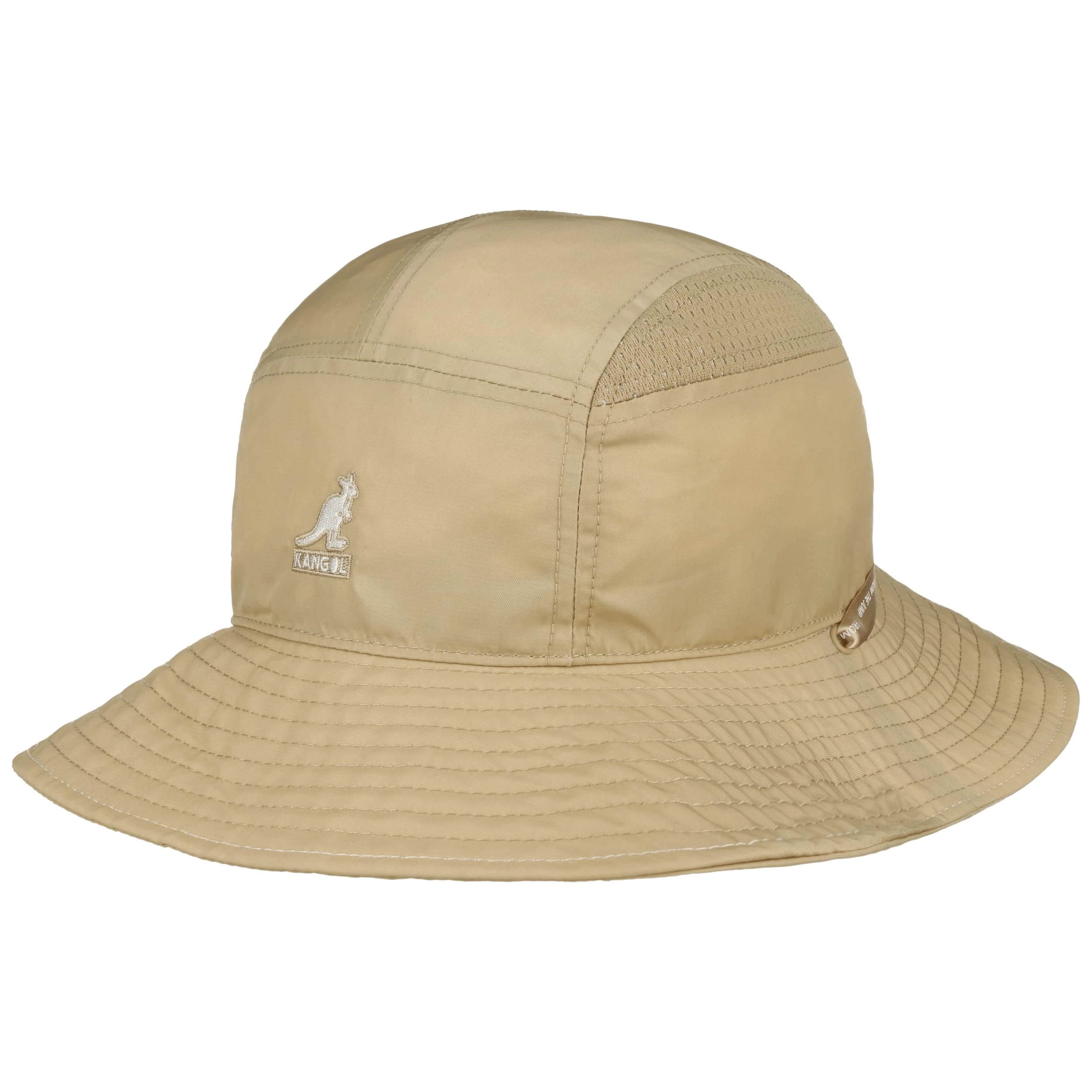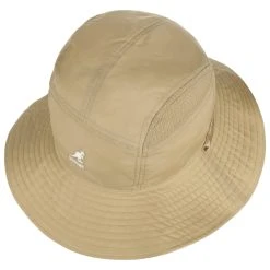 Aus robustem und pflegeleichtem Material besteht der Fischerhut von Kangol und spendet mit seiner breiten Krempe kühlenden Schatten.