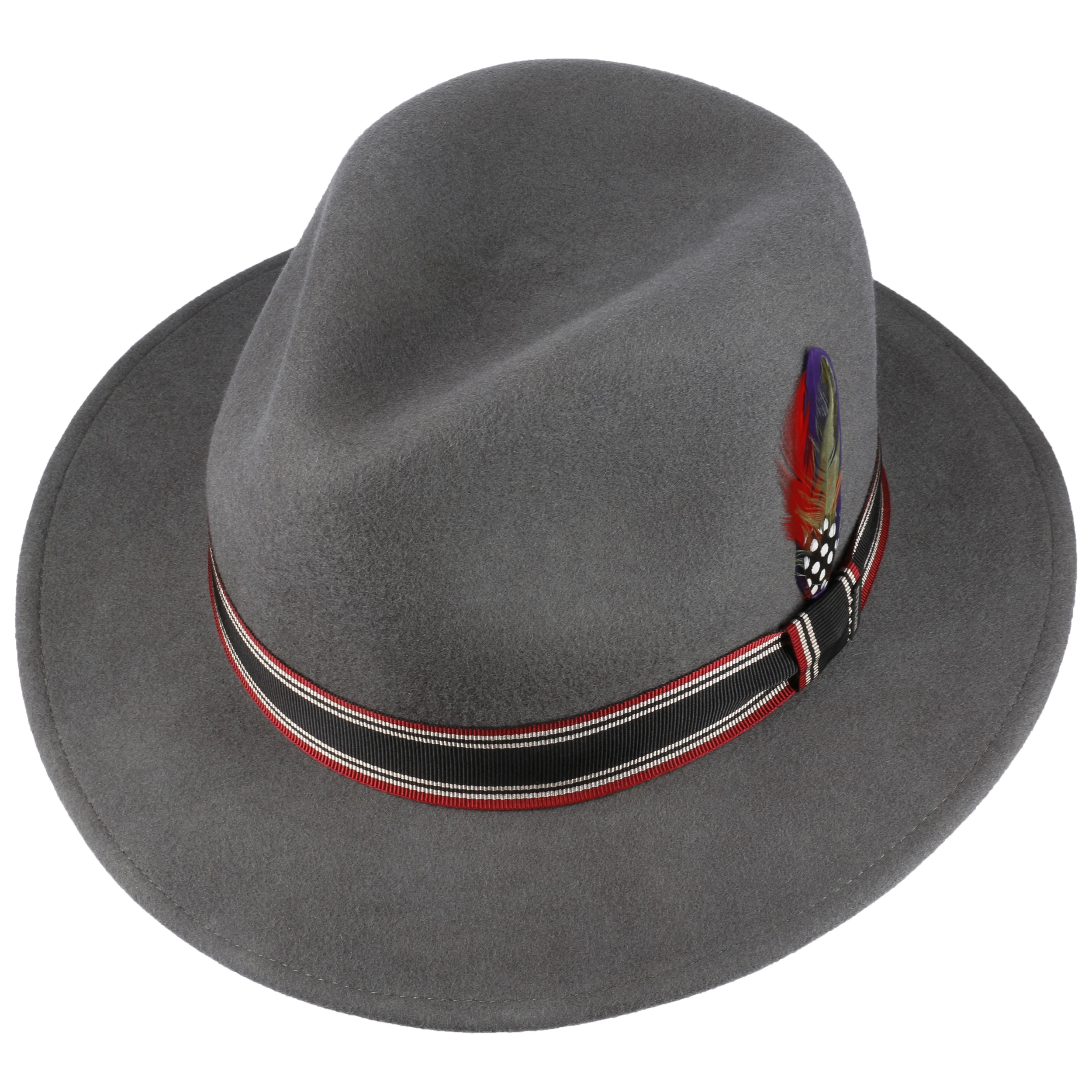 Das Design erfährt seine Ergänzung durch eine farbig gestreifte Ripsbandgarnitur mit feschem Federschmuck, wobei knautschbare und wasserabweisende Eigenschaften dem Filzhut eine gehörige Portion Robustheit mitgeben. So können äußere Einflüsse unterwegs und auf Reisen seine Schönheit kaum beeinträchtigen.