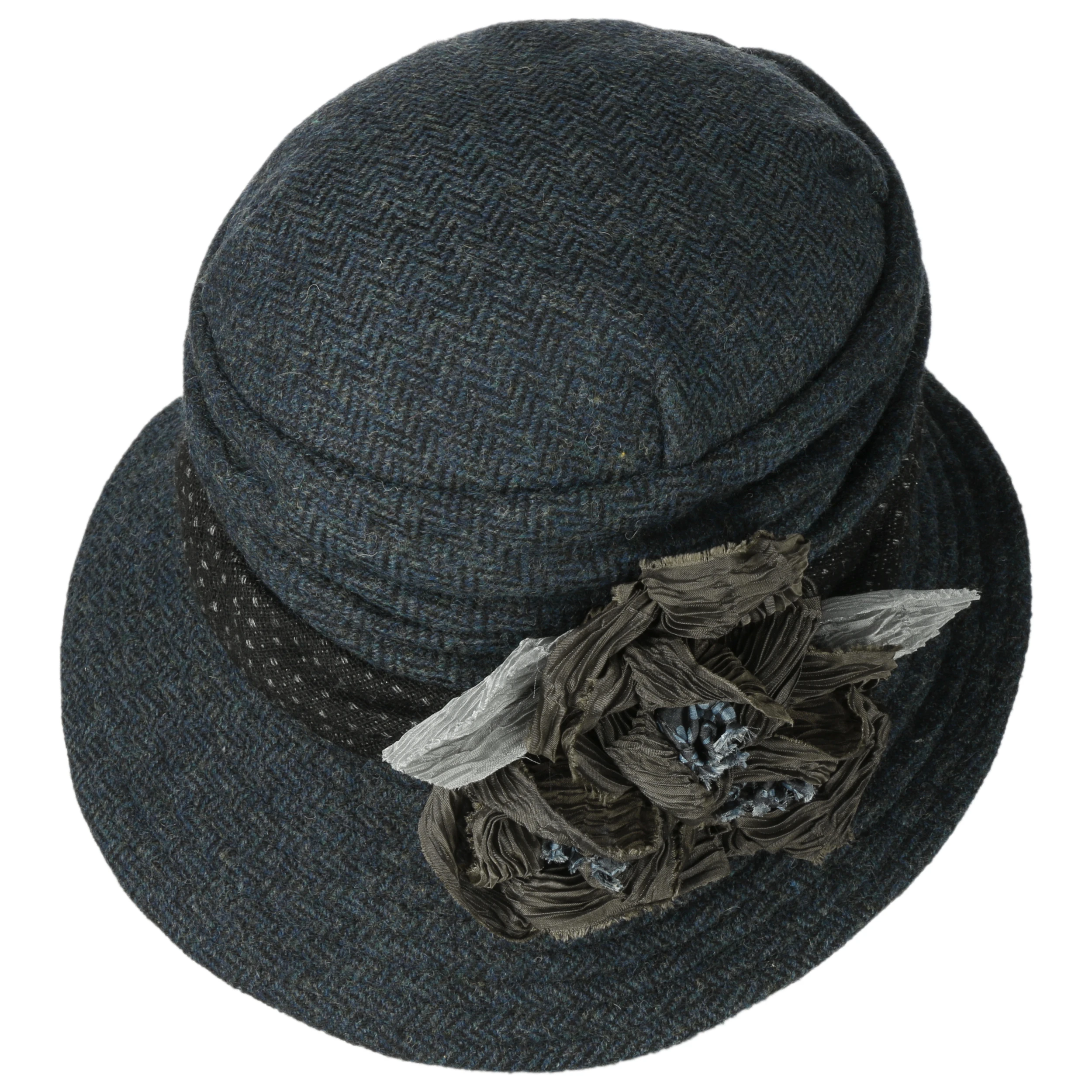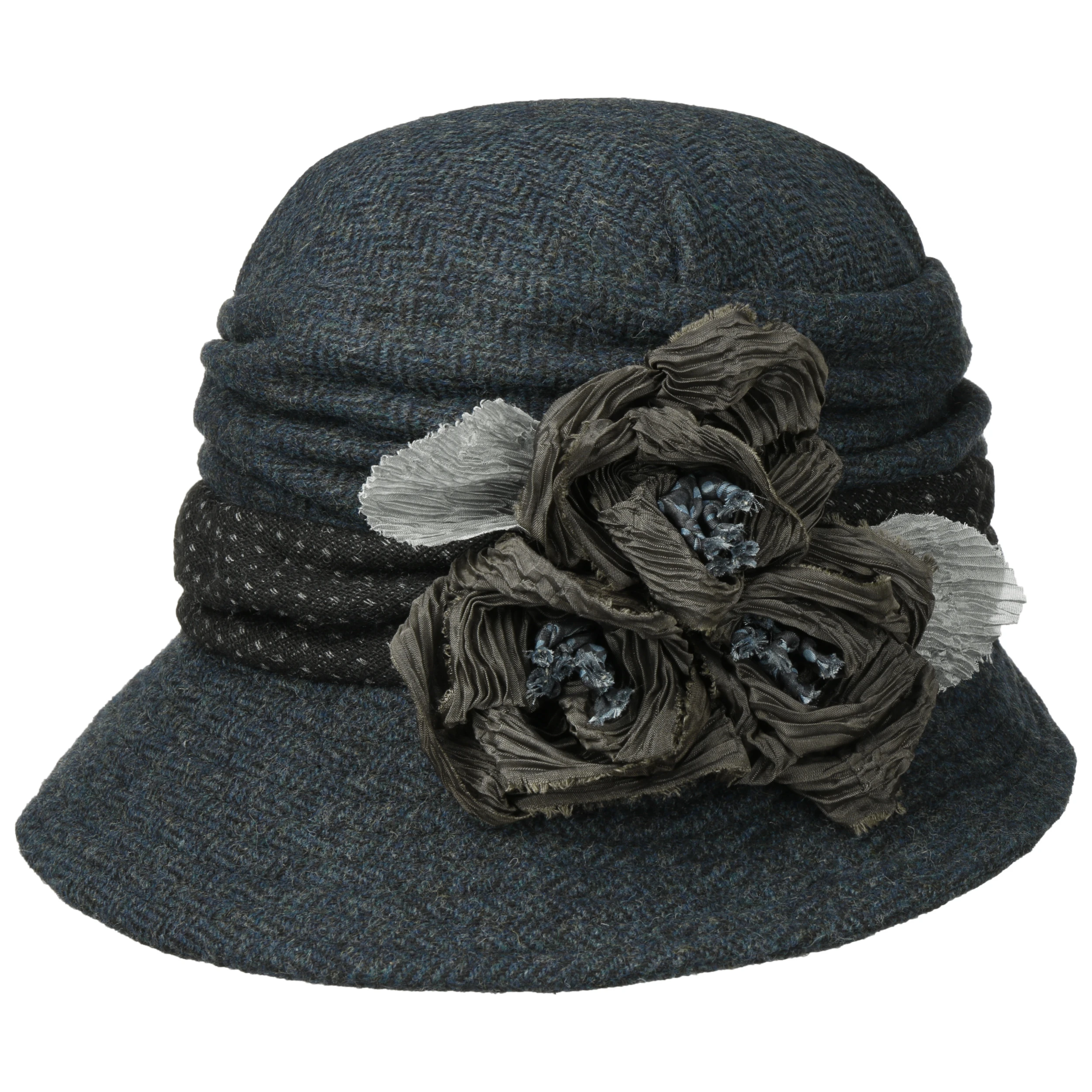 Der liebevoll gestaltete Blumenschmuck an der Seite verleiht der femininen Glockenform eine ganz besondere Grazie. Selbstverständlich sind die detailliert geformten Blüten farblich perfekt abgestimmt auf die Krone und das abgesetzte Hutband. Dank einem Wollanteil von rund einem Drittel ist das neue Lieblingsstück das ideale Accessoire für Herbst und Winter.