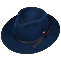 Die gerade Krempe macht den Filzhut zu einem ausdrucksstarken Begleiter, eine schmale Ripsbandgarnitur mit seitlicher Schleife setzt ihm die schmucke Note. In handgefertigter Qualität und mit bequemem Sitz ist der ansprechende Fedora im Alltag dabei und erweist sich auch auf Reisen als kleidsames Accessoire.