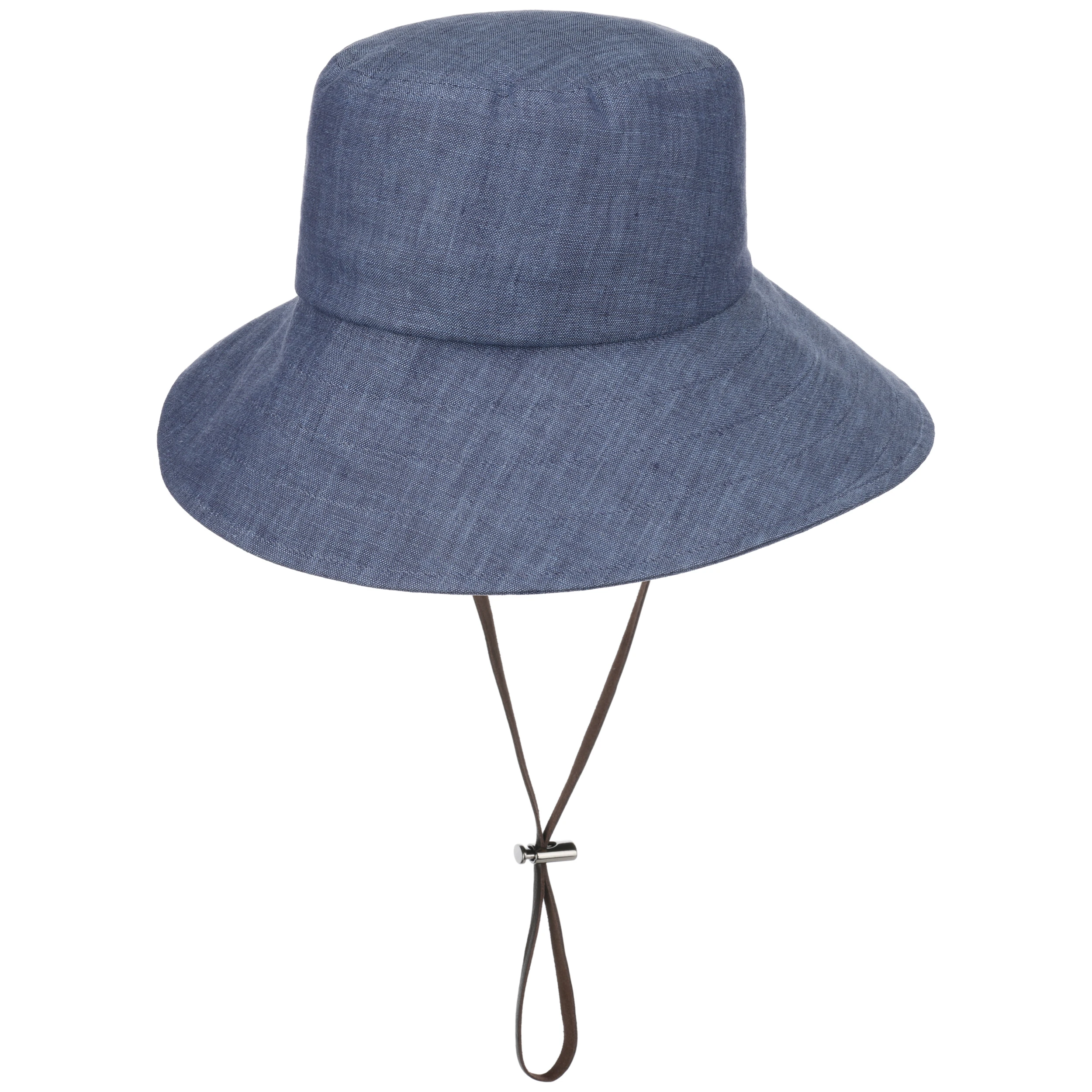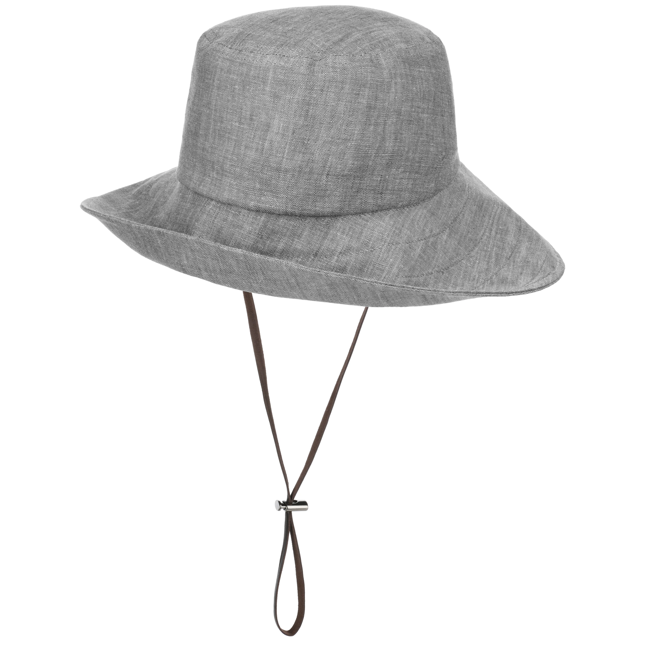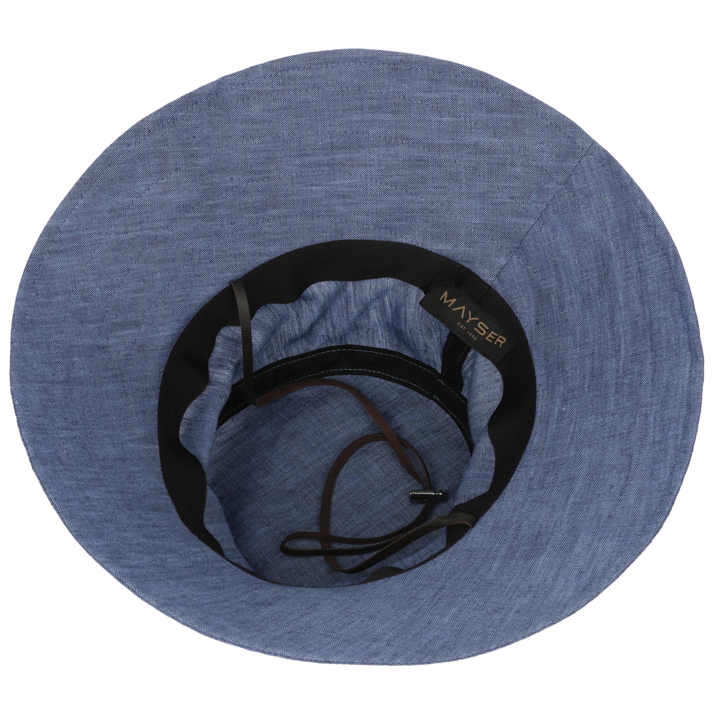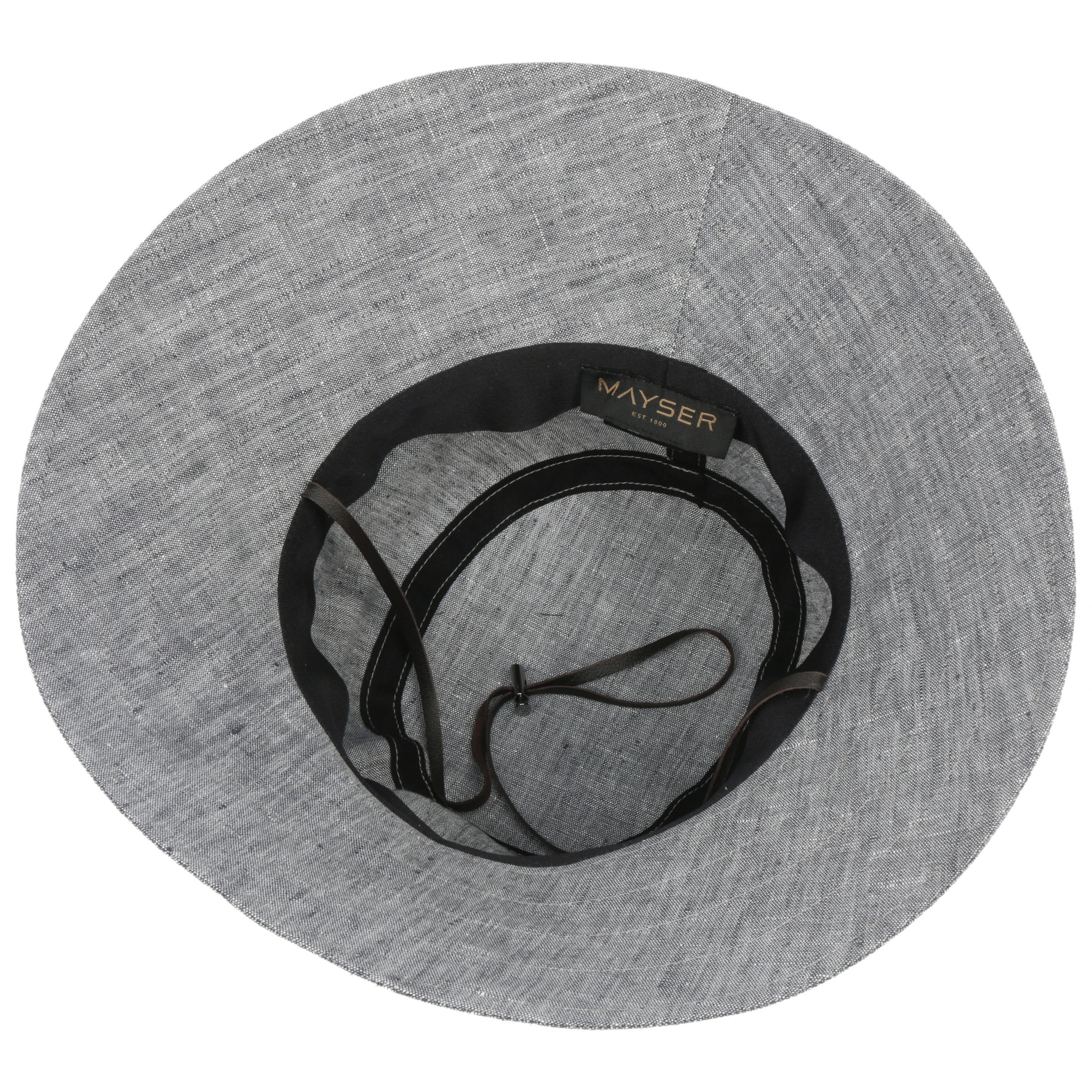 Und so entfaltet dieser breitkrempige Sonnenhut seinen Charme erst so recht, wenn er frisch aus dem Rucksack oder Reisetrolley gezogen wird. Aber auch daheim spendet er wohltuenden Schatten und schützt mit Faktor 30 vor UV-Strahlung. An dem edlen Kinnband aus 100% Leder lässt er sich rutschsicher befestigen oder in Innenräumen einfach um den Hals tragen.