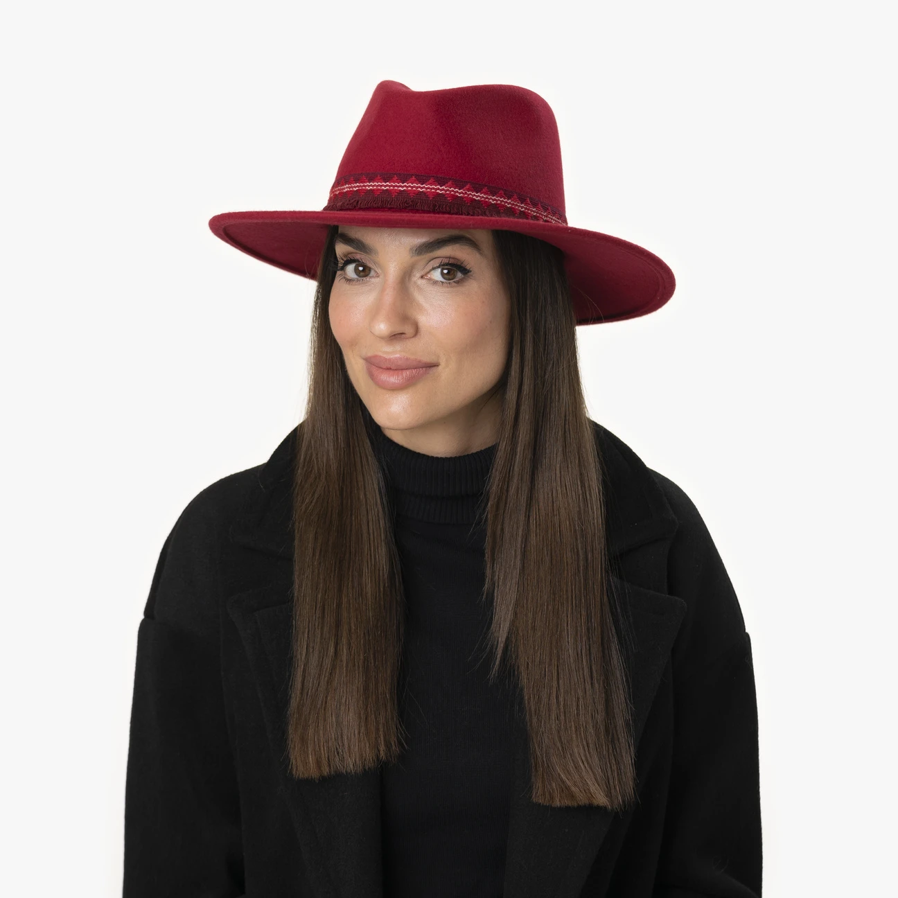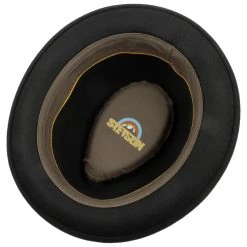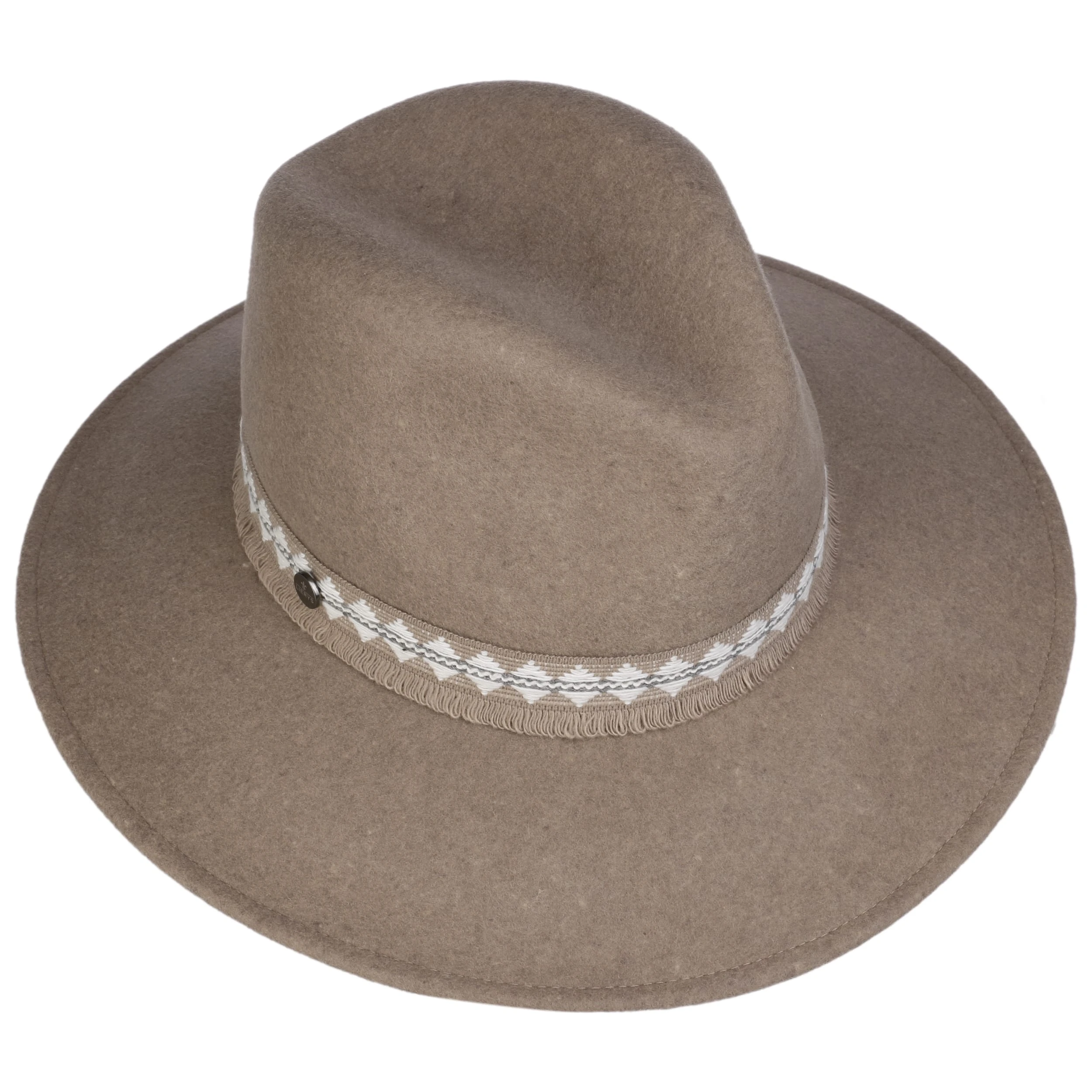 Er zeichnet sich durch seine elegante Form mit breiter Krempe aus. Zum modischen Eyecatcher wird das Modell durch das aufwendig gestaltete Garniturband mit Rautenmuster, dekorativer Schlaufenborte und Ziernähten in Kontrastfarbe. Ein eingenähtes Stretchfutterband sorgt für den optimalen Sitz der Kopfbedeckung.