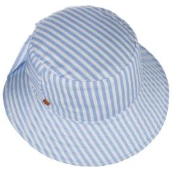 Eine Seite präsentiert sich mit maritimem Streifenmuster, die andere ist unifarben gehalten. Dank UV-Schutz 80 eignet die sommerliche Kopfbedeckung mit breiter Krempe und Zierbändern sich ideal als Outdoorhut. Bei der Gartenarbeit sowie auf Ausflügen oder im Urlaub schützt der flexible Hut den Kopf zuverlässig vor Sonne.