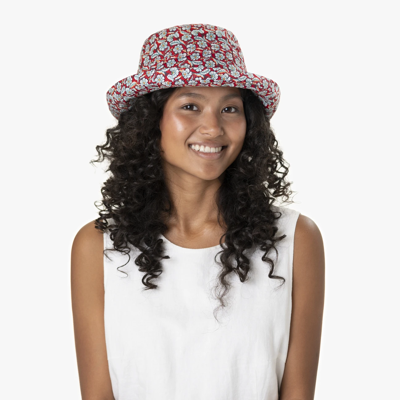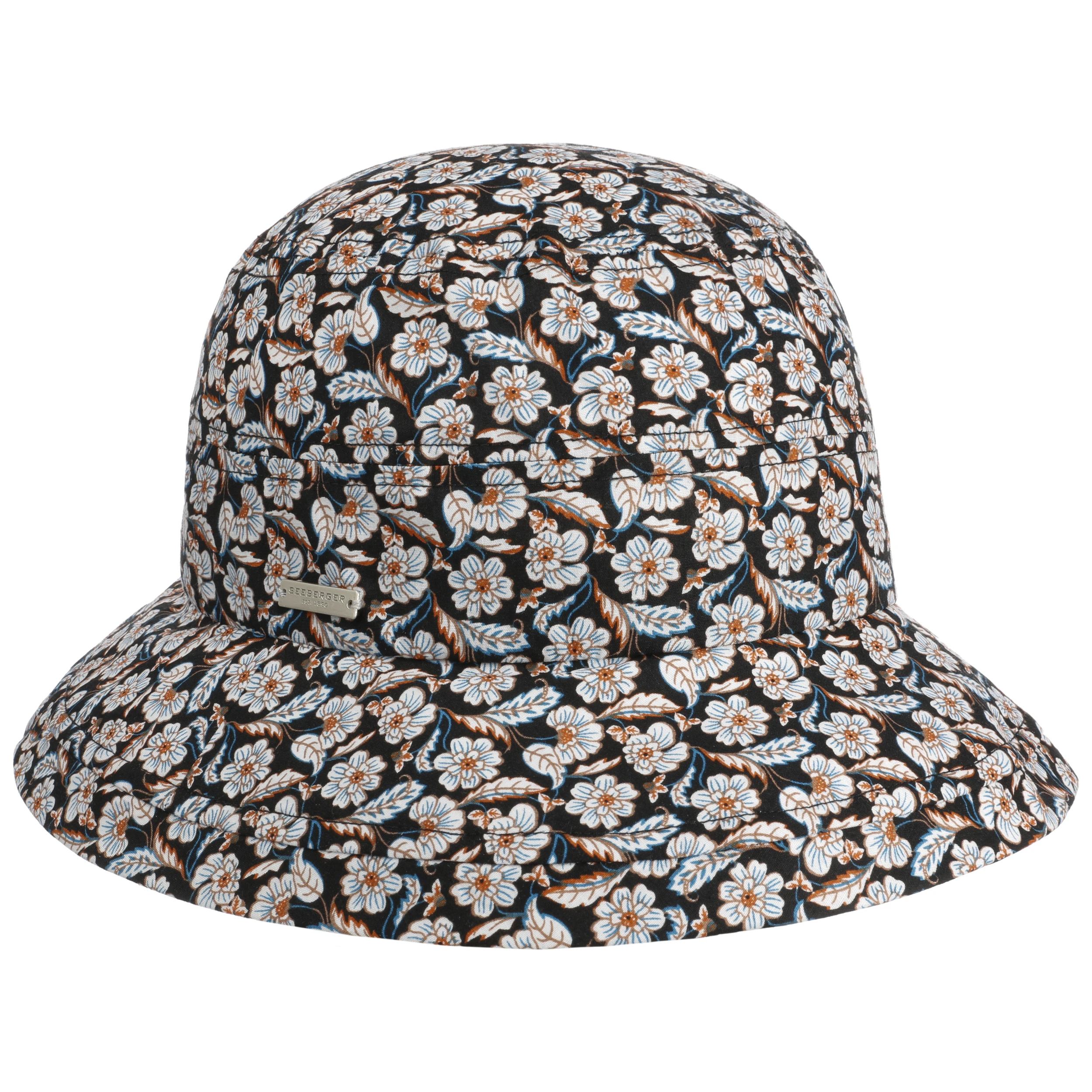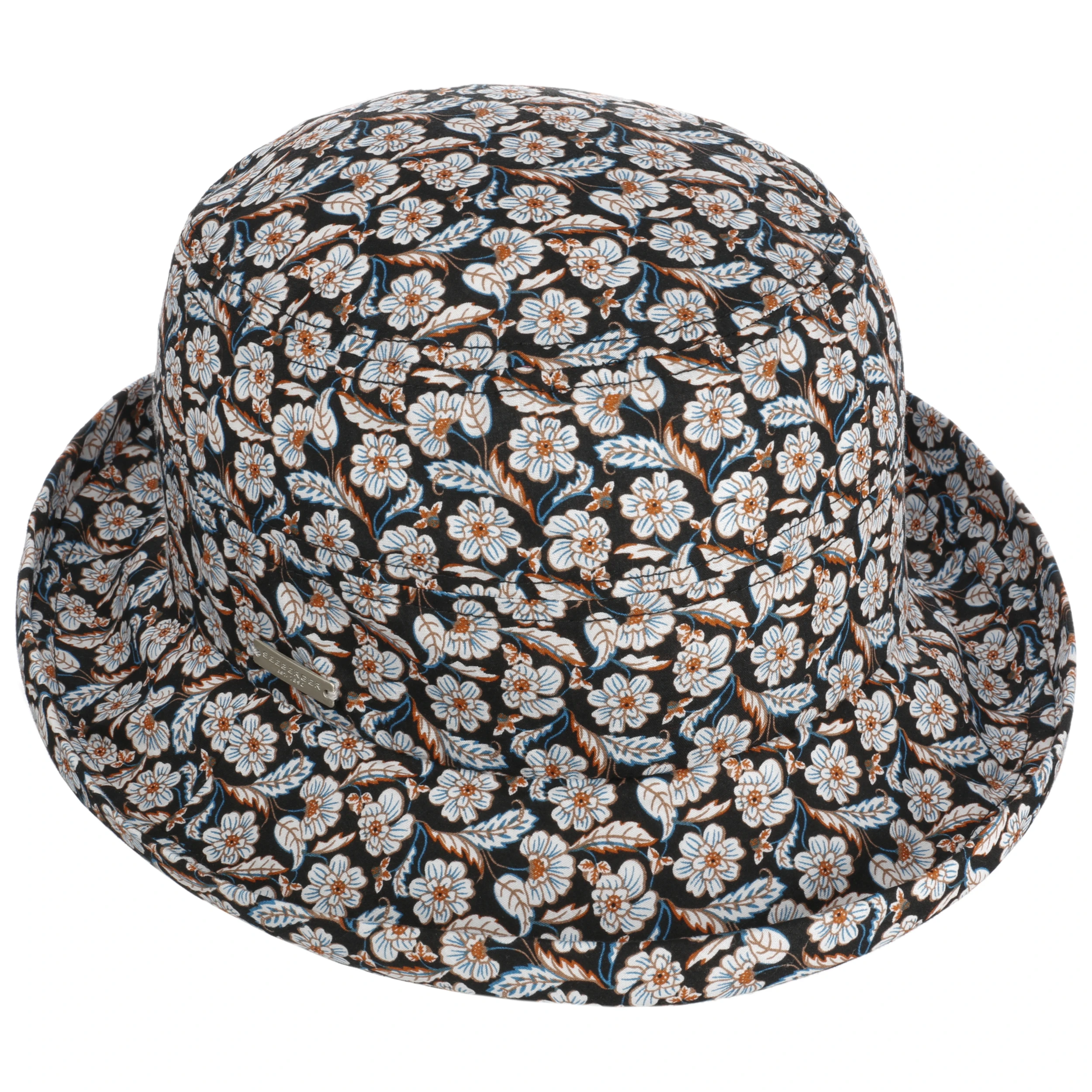 Der Print, der den Kopfteil und die Krempe vollständig ziert, zeigt detailverliebt ausgearbeitete Illustrationen von zarten Blumen – ein lebhaft anmutender Blickfang mit sommerlichem Charakter. Ein modernes Detail des attraktiven Designs ist die Kante der Krempe, die galant nach oben geschlagen ist.