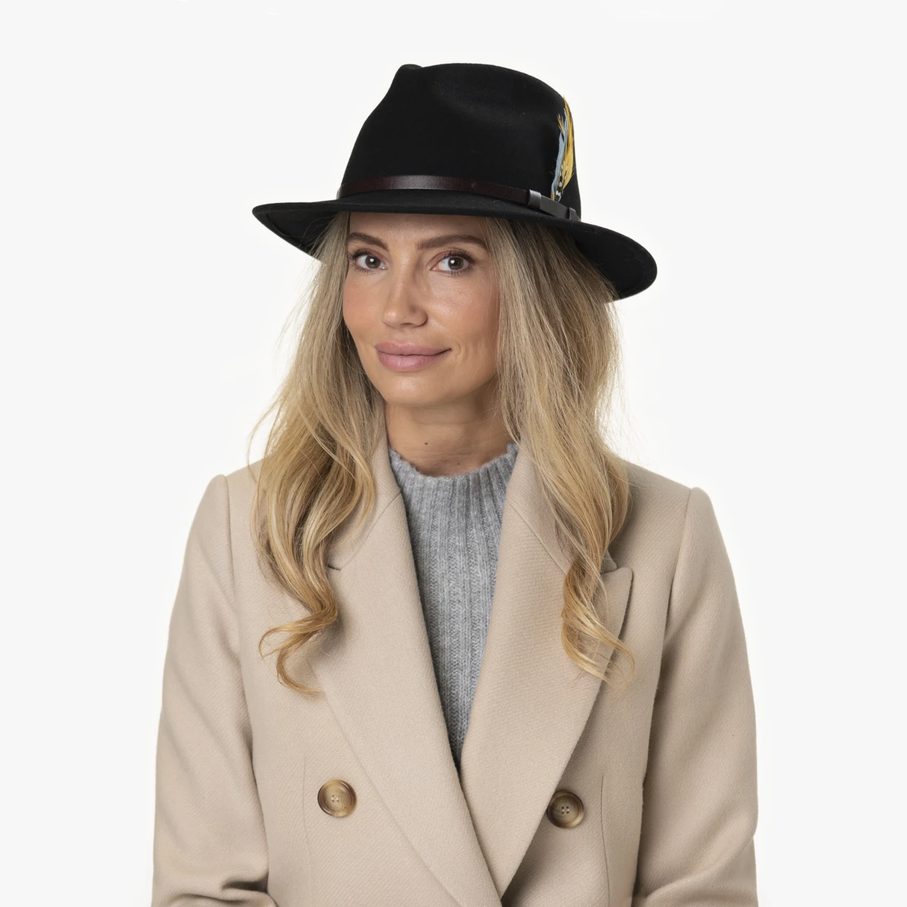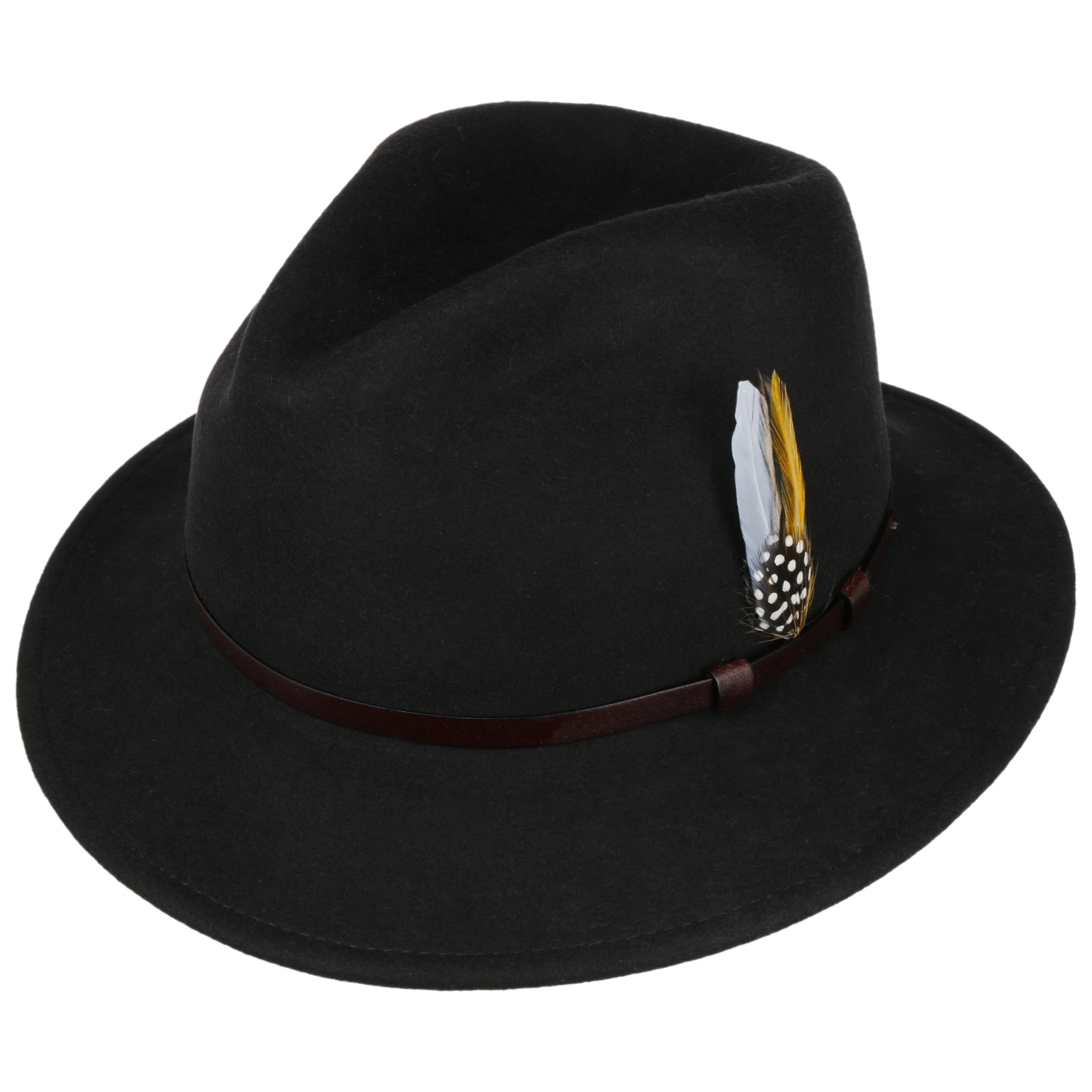 Ihre eindrucksvolle elegante Note verdankt die von Hand gefertigte Kopfbedeckung der galanten Form mit Kniffen und Falte im Kronendach sowie einer leicht nach unten geneigten Krempe. Die schöne Optik des hochwertig verarbeiteten Filzmaterials aus 100% Wolle rundet das stilvolle Design auf geschmackvolle Weise ab.