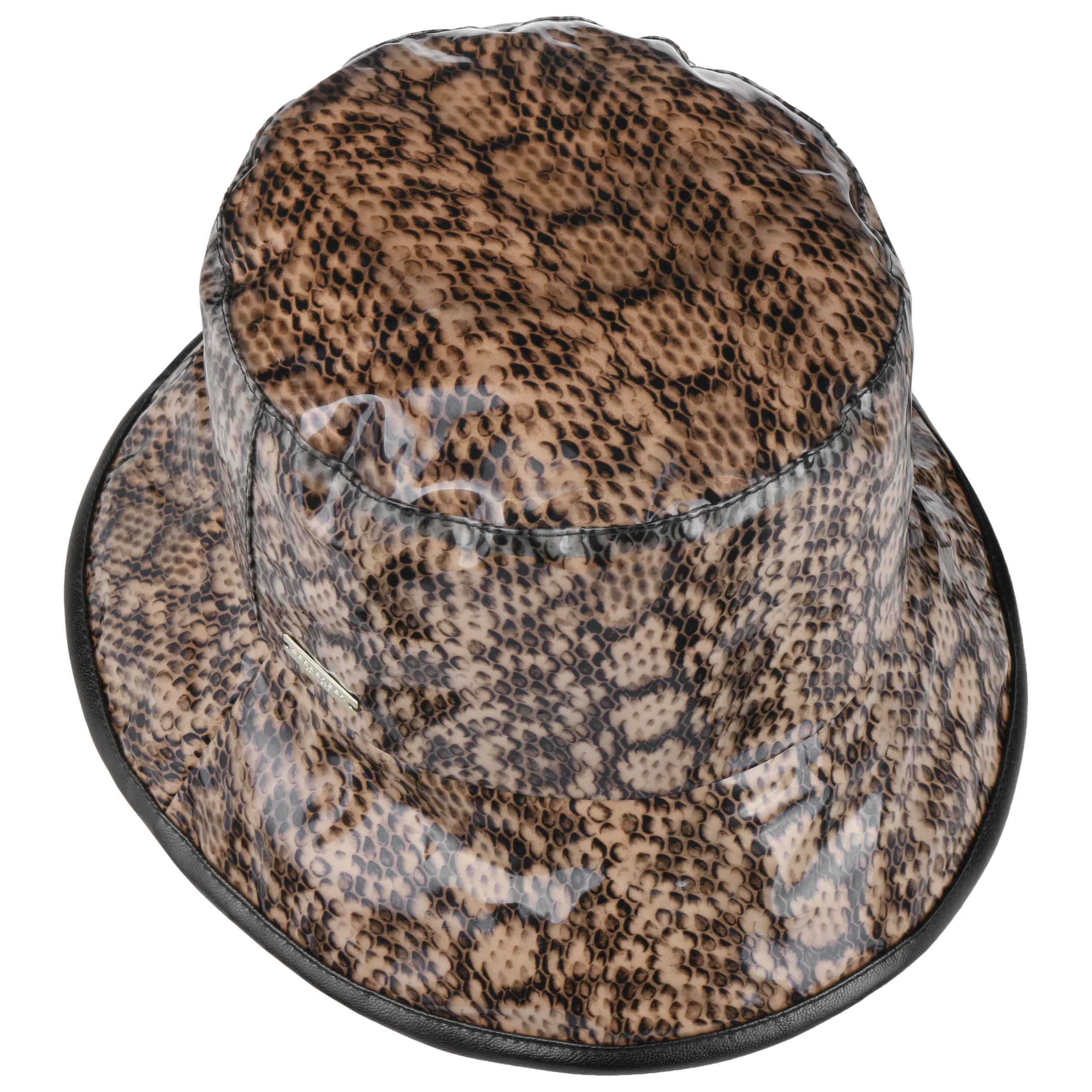 Sobald er auf dem Kopf sitzt, sorgt das wasserabweisende Material zusammen mit der abfallenden Krempe, dass das Haupt trocken bleibt. Um den bequemen Tragekomfort kümmert sich unterdessen anschmiegsames Baumwollfutter. Optisch punktet der Regenhut mit angesagtem Schlangendesign.