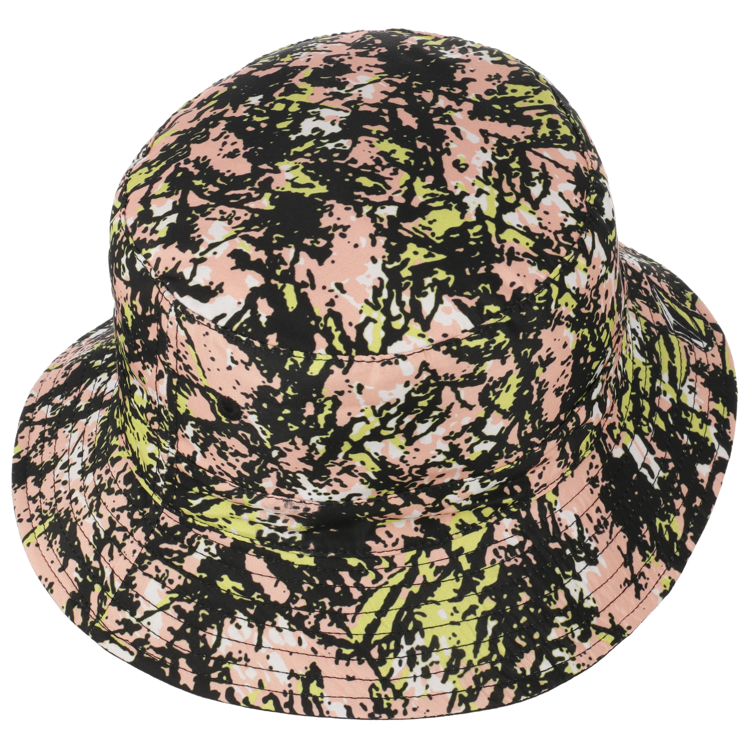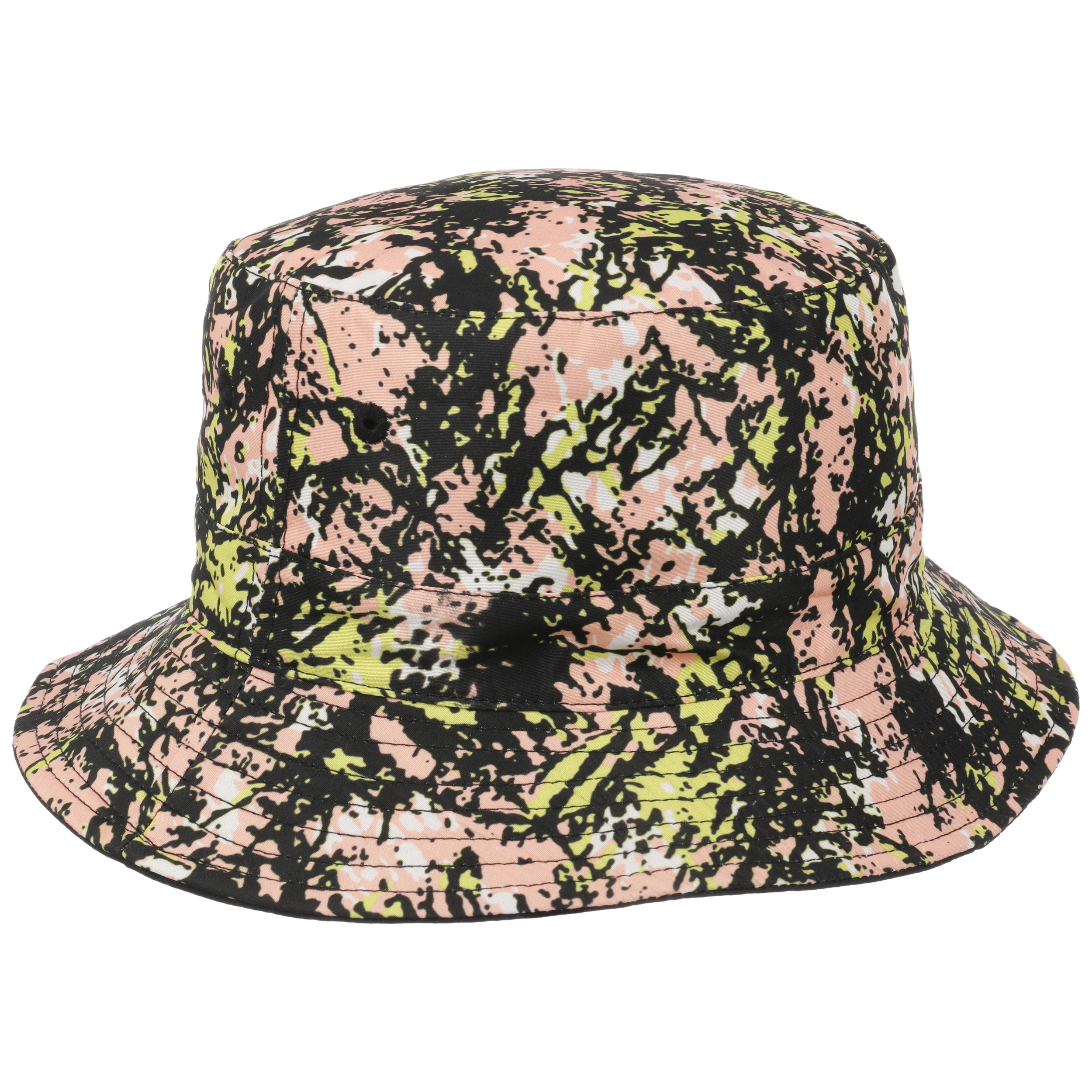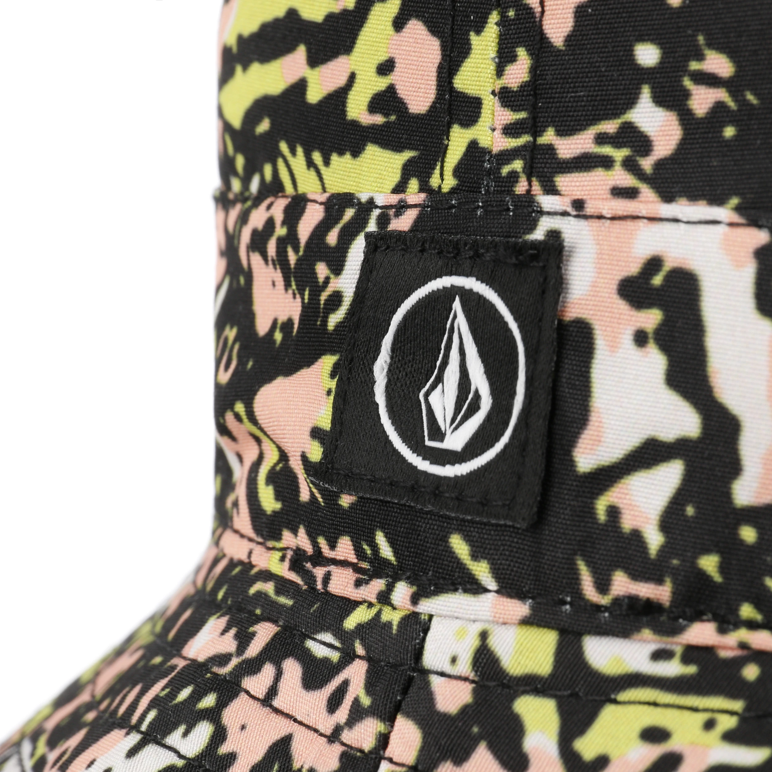 Die Außenseite ziert ein bunter Allover-Druck mit gewebtem Etikett, während der Sommerhut innen einfarbig in Schwarz gehalten ist. Einen zierlichen Akzent setzt die weiße Stone-Stickerei. So lässt sich der Fischerhut flexibel und ganz nach Belieben kombinieren. Mit seiner Krempe schützt er Kopf und Gesicht vor der Sonne.