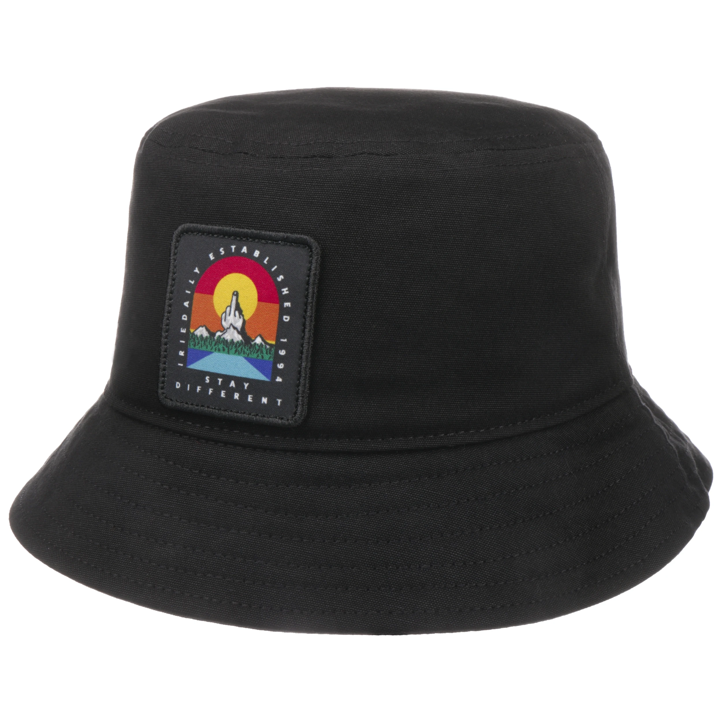 Der Markenpatch auf der Front des Bucket Hats zeigt der Welt den Stinkefinger.