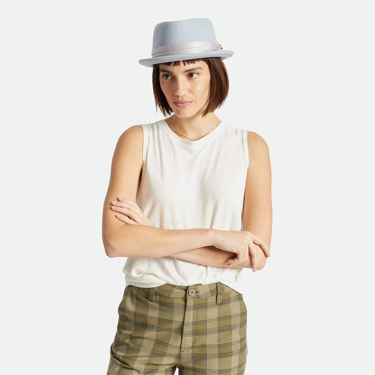 In ausgesuchtem Design und ebensolcher Qualität kommt der Pork Pie von Brixton daher: Dem Kopf schmeichelt er mit wärmendem Wollfilz in sorgfältiger Verarbeitung, dem Auge mit unifarbenem Erscheinungsbild und farblich abgestimmter Stoffgarnitur, die sich stilvoll um die dezent eingedellte Krone legt und von einem schicken Markenemblem gehalten wird.