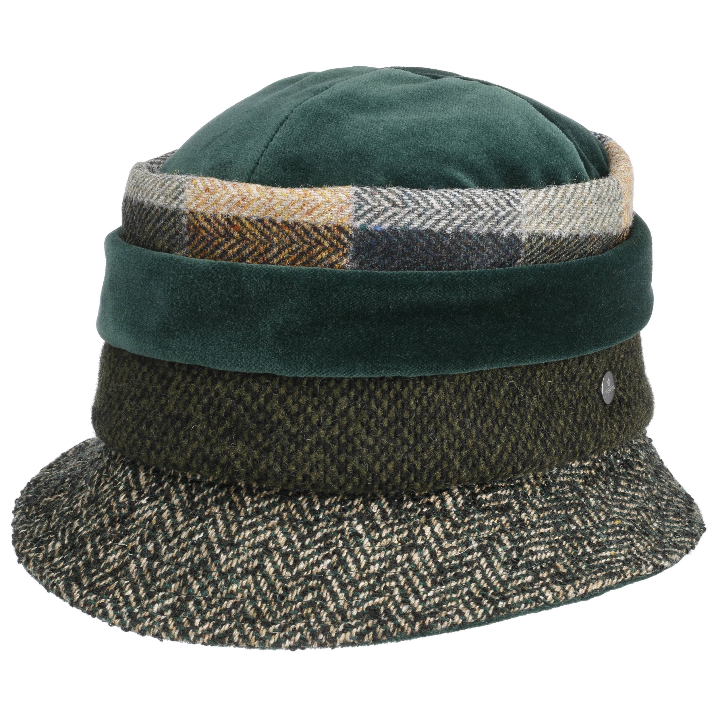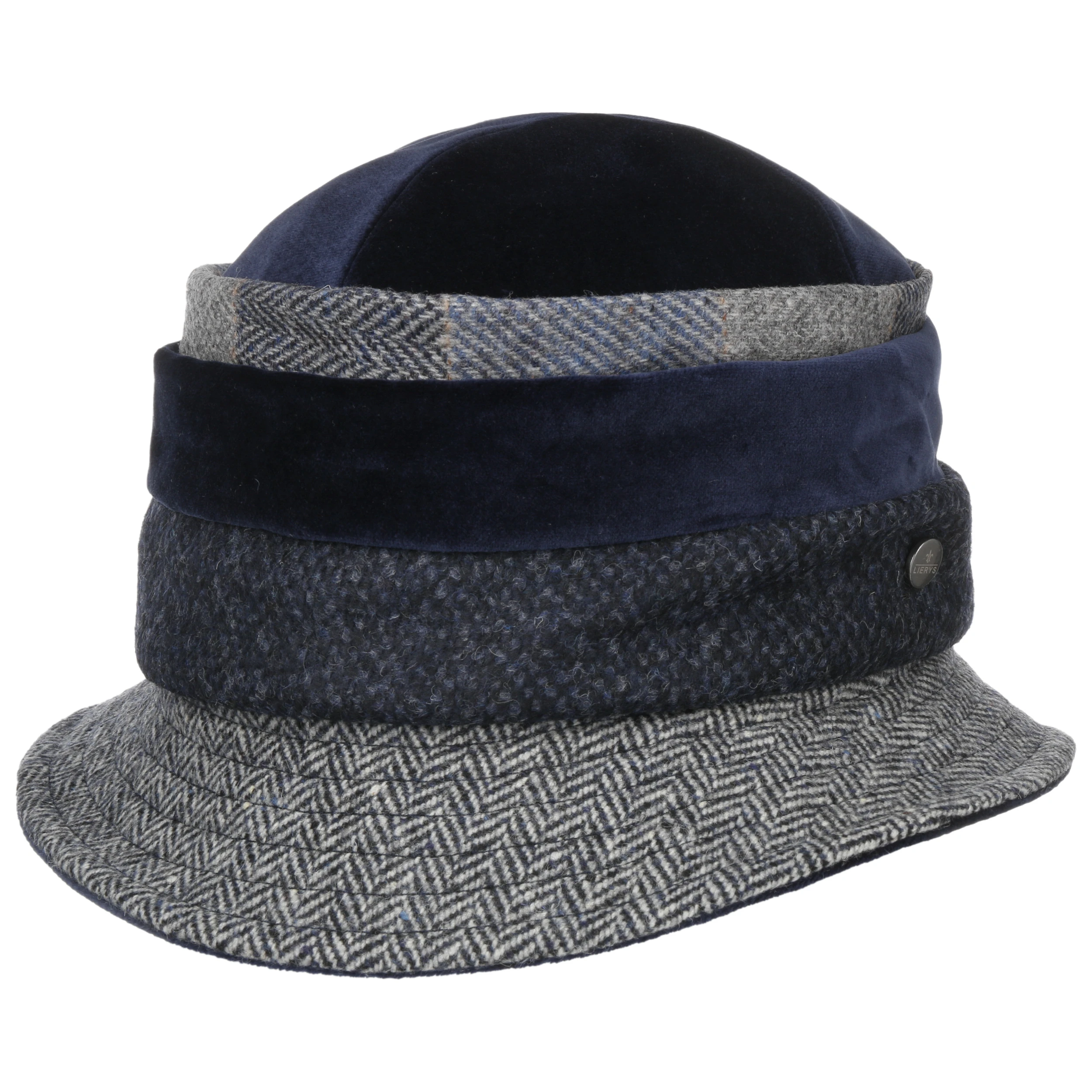 Stilbewusst fügen sich die unterschiedlich gemusterten Patchworkelemente zu dem leicht asymmetrischen Hut von Lierys zusammen, der mit einem großzügigen Anteil Wolle behagliche Winterwärme mitbringt.