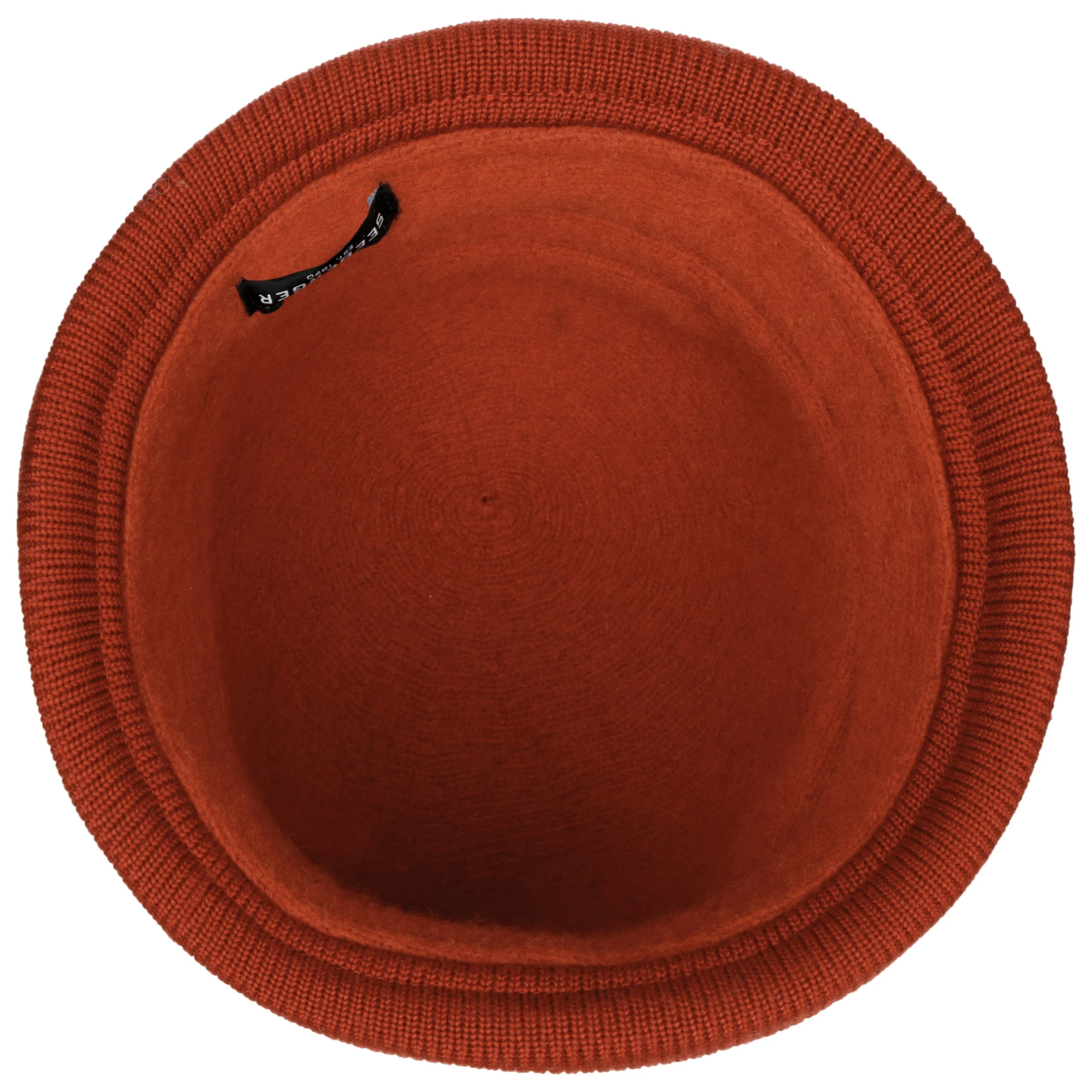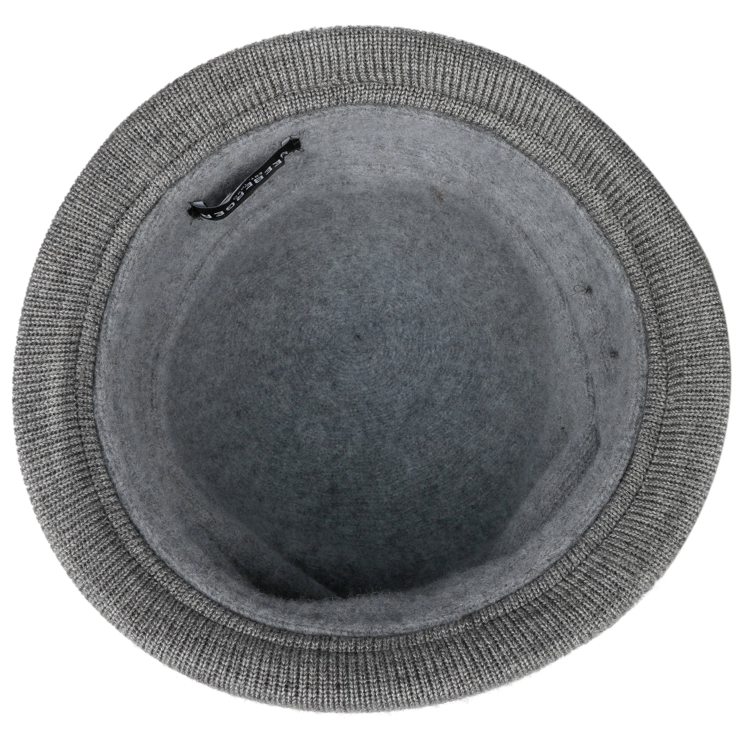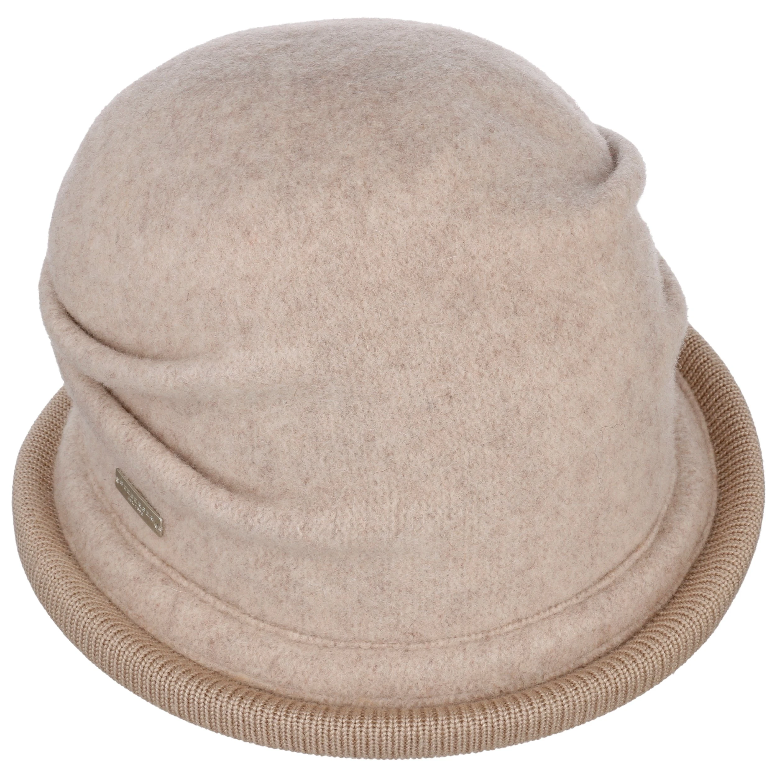 Aus hochwertiger Schurwolle mit warmem Charakter und in unifarben meliertem Design gefertigt präsentiert sich der Walkhut, der durch asymmetrische, halb umlaufende Biesen sowie einem schick aufgerollten Strickrand aus einer Wollmischung seine gelungene Vollendung erhält. Gemütlichkeit und Eleganz vereinen sich in dem Filzhut in gekonnter Kombination.