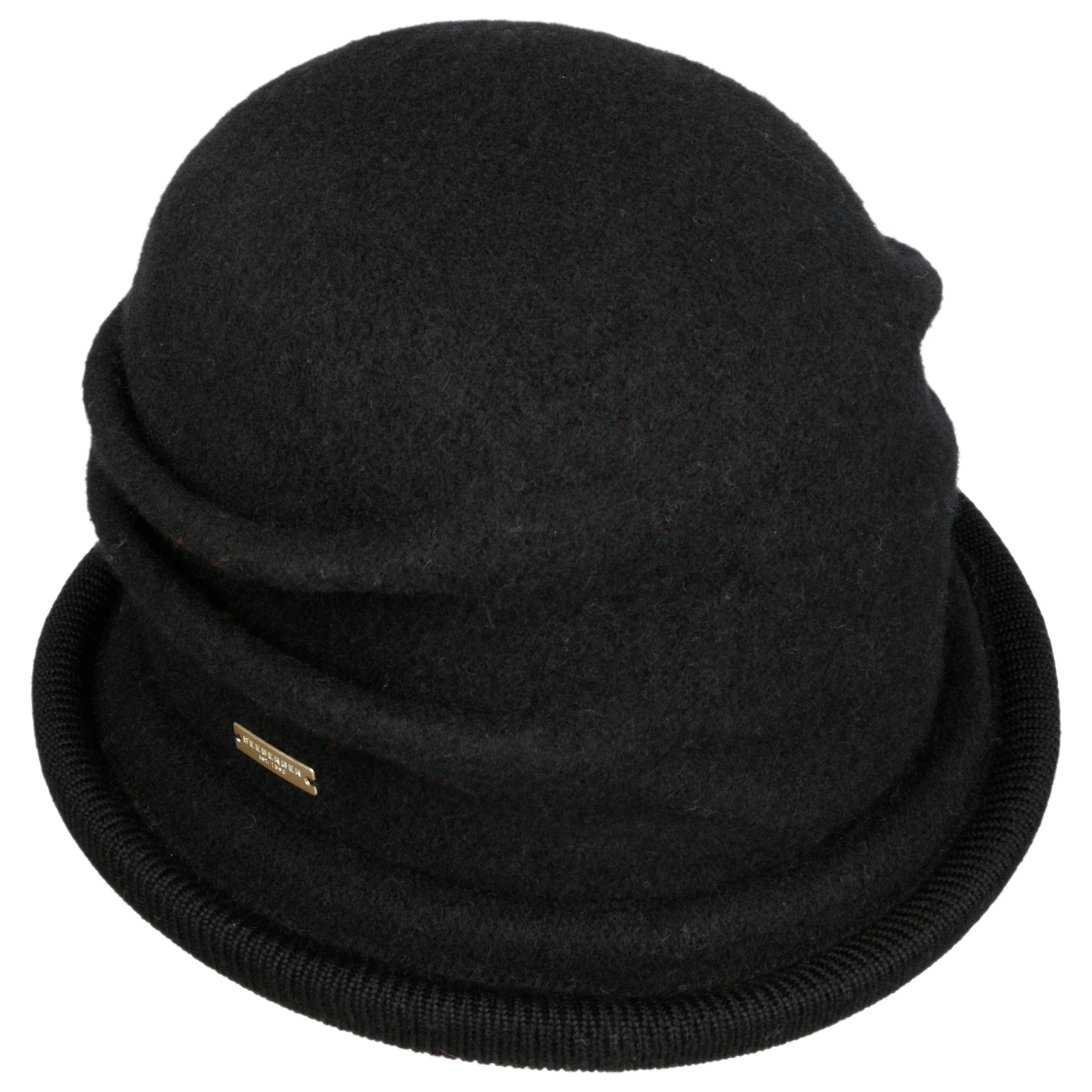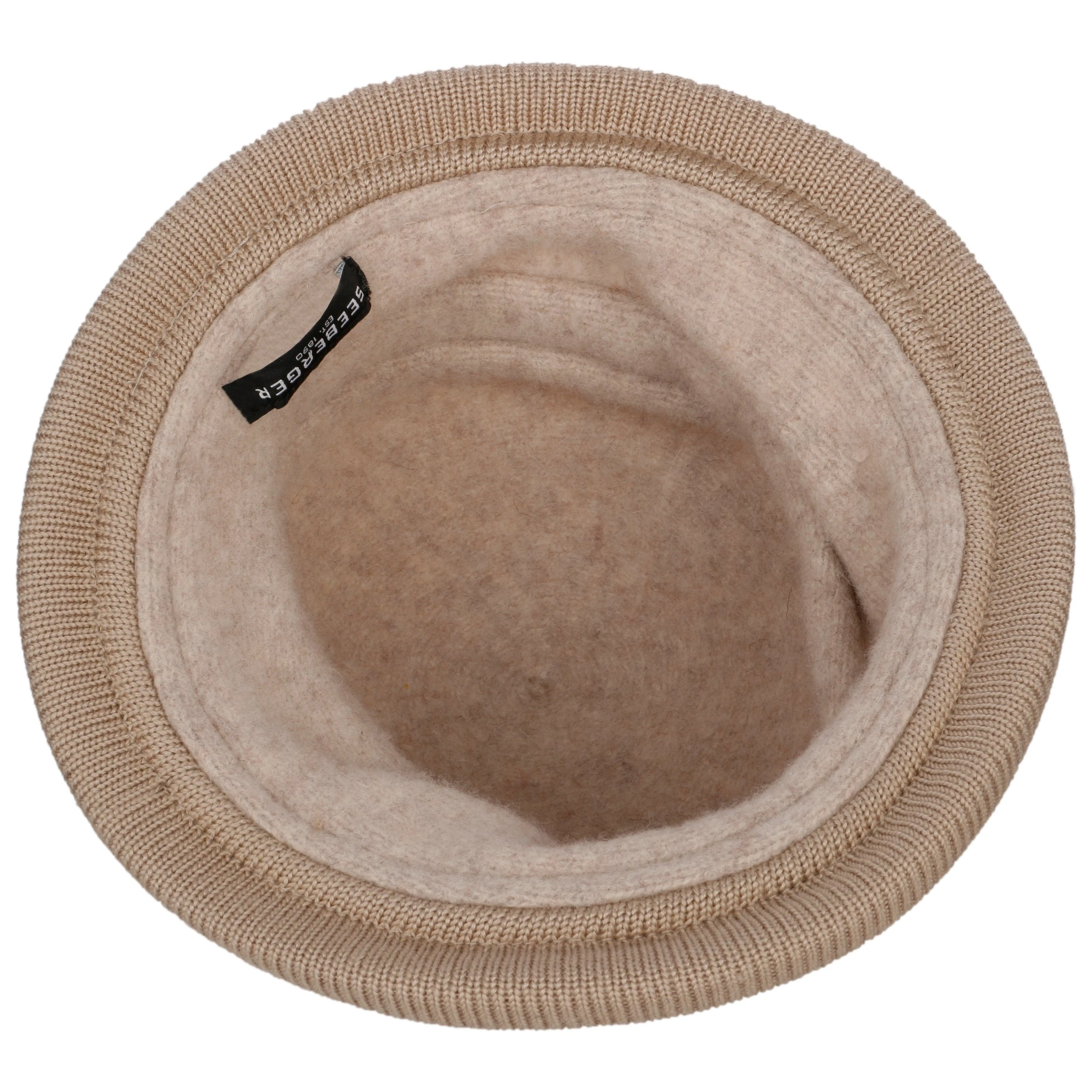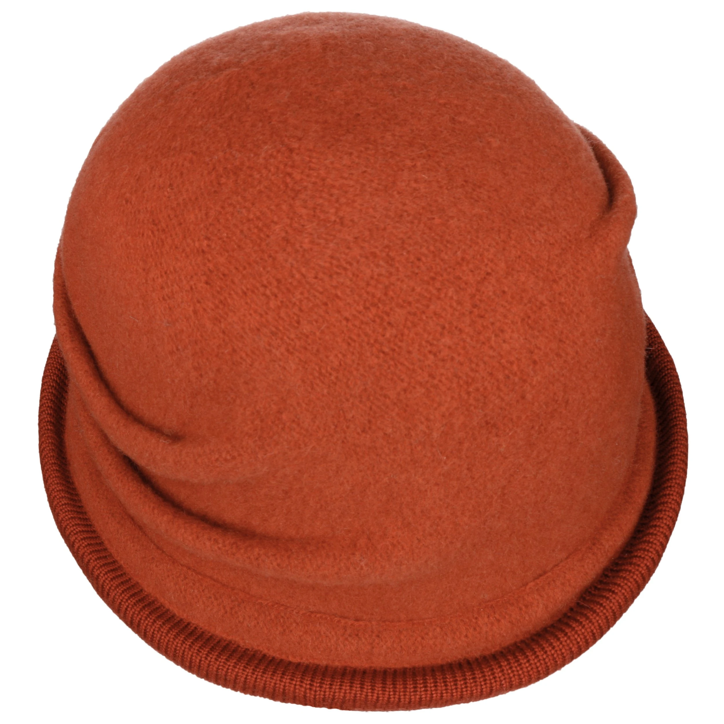 Aus hochwertiger Schurwolle mit warmem Charakter und in unifarben meliertem Design gefertigt präsentiert sich der Walkhut, der durch asymmetrische, halb umlaufende Biesen sowie einem schick aufgerollten Strickrand aus einer Wollmischung seine gelungene Vollendung erhält. Gemütlichkeit und Eleganz vereinen sich in dem Filzhut in gekonnter Kombination.