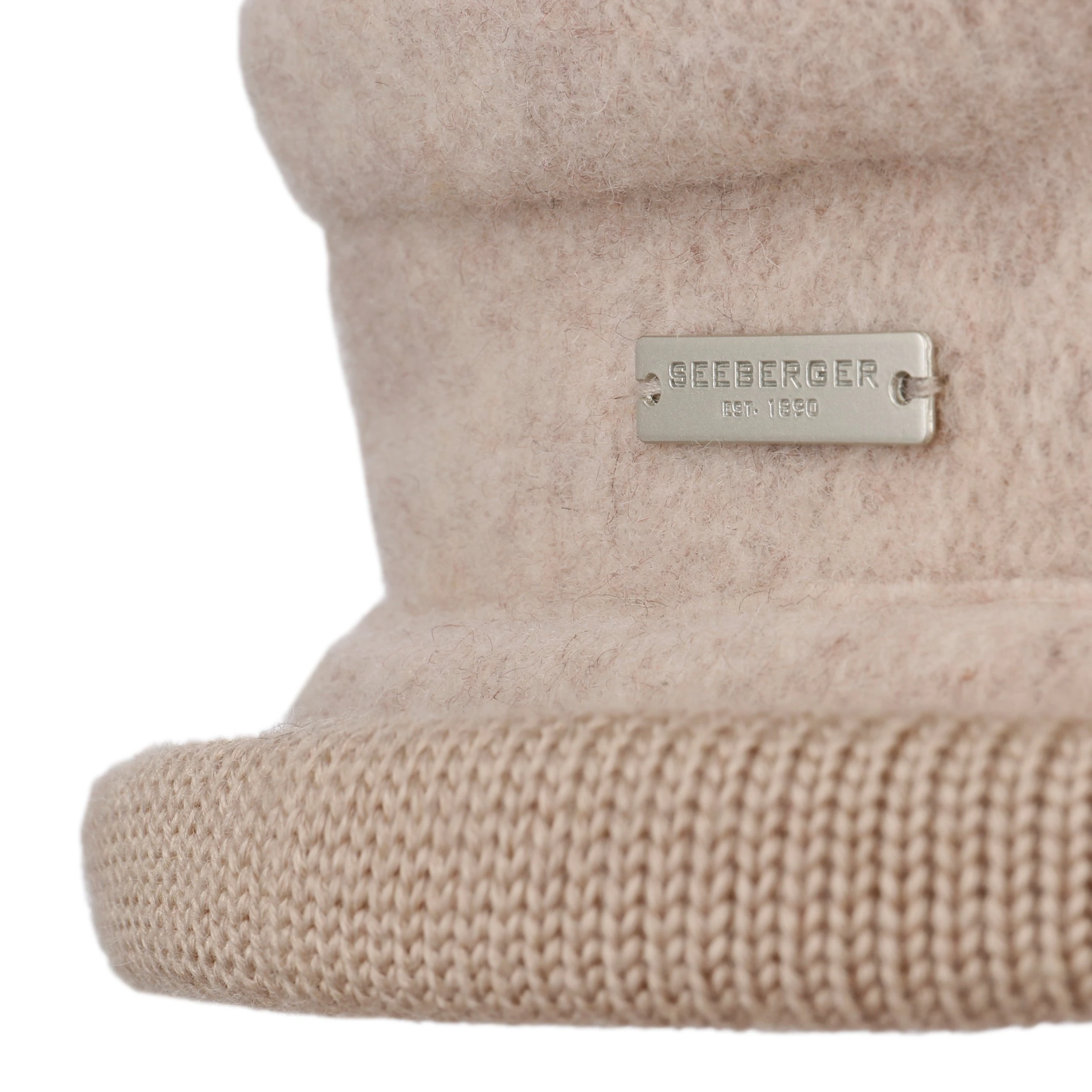 Das seitliche metallene Markenemblem zeigt: Der behagliche Glockenhut stammt aus dem Hause Seeberger.